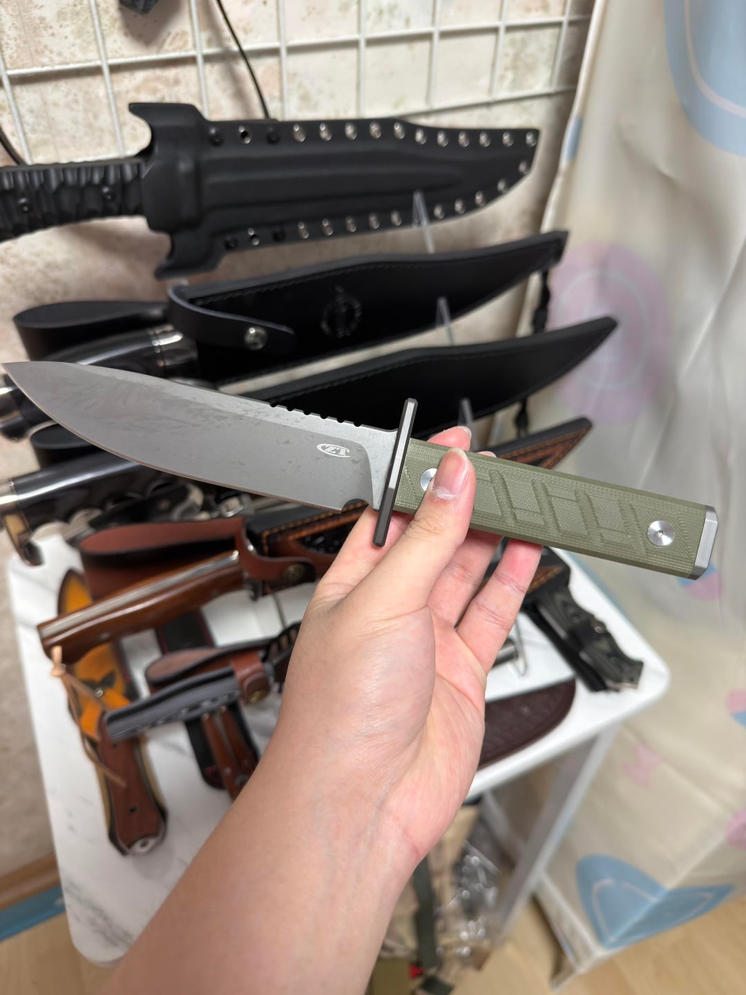 Here I have a replica of zero tolerance 0006, handcraft in China using imported CPM-3V steel. You can tell it is a replica by the holes around the handguard and the sheath. It is super tight (unlike the original). There is no way to tell if the steel is indeed 3V without taking it to a lab and I am not doing it. It cost me a whole sake of 390RMB(~56usd). There are many other replicas that cost half of this price but they are all made of D2. I am sharing this info because of the recent Bark Rivers controversy. I hope anyone who reads this post holds a certain sense of Chinese made knifes. Especially the steel, there are many YouTubebers such as knife steel nerds who tested Chinese made steel like 8cr, is in fact not bad as many people think. So please don’t start blasting me or anyone who likes Chinese made knifes.
