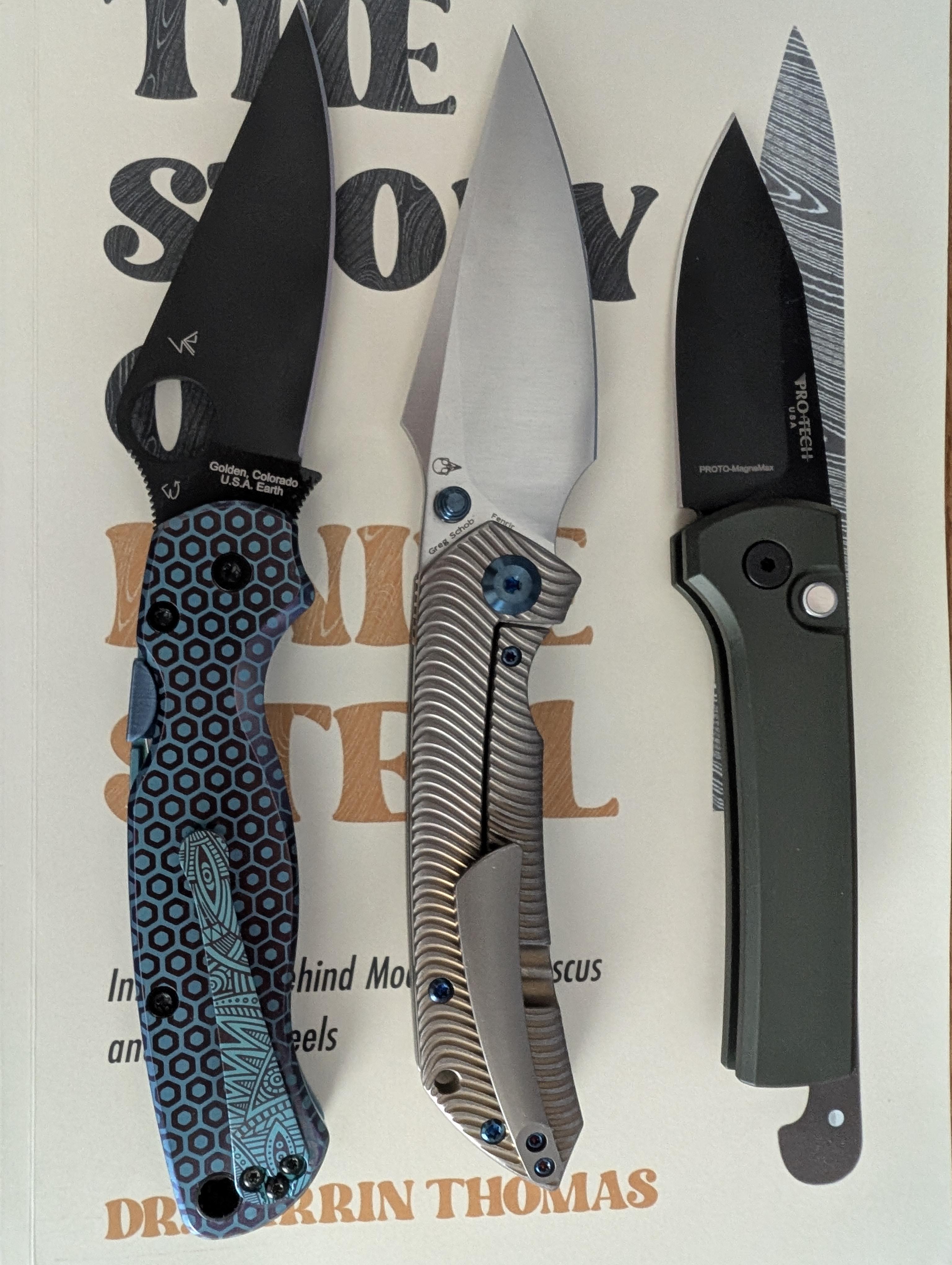 Magnacut PM2, Kansept Ti Fenrir with the water ripple bronze, and my 1st MagnaMax the Chaves PT Scapegoat. A BST exclusive. \,,/