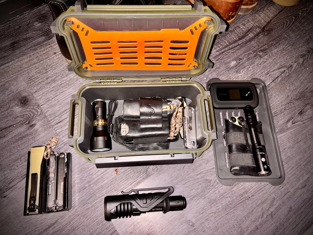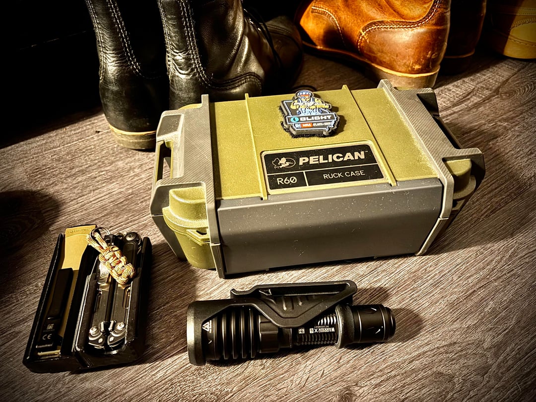 Pelican R60 (stores extra tools/knives/holsters when not in use)