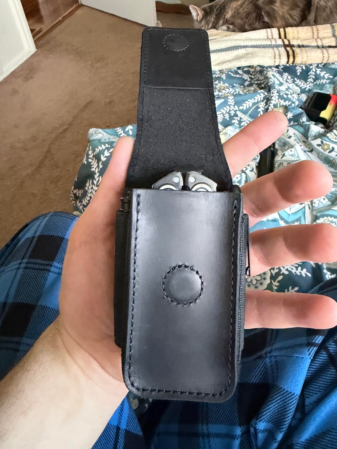 In EDC Shoutout Topstache! Finally replaced the dingy ass stock L(eatherman) sheath. April 1, 2026 Sheath is holding an arc, Spacepen, Olight i3e, and a bit kit. Umnumzaan in the pocket shot.Bonus cat tax lounging on the bed lol by Papitoooo EDC Prev Post NKD! Matriarch 2 April 1, 2026 Next Post My Nerdy EDC April 1, 2026 Related Posts Hold fast EDC coin April 8, 2026 New Keyring Loops from 711L… for their Mini Ratchets April 8, 2026 A super practical pry bar. I’m really fond of its size-pocket fitting April 8, 2026 2 Comments AutoModerator 7 days ago Thank you for posting to r/EDC! Include a detailed item list (make/model) within **1 hour** of submission. Lists can go in the title, a comment, or the image. Posts without lists will be removed. If you have already provided a list, not further action is needed, thanks | [FAQ](https://www.reddit.com/r/EDC/wiki/faq)*I am a bot, and this action was performed automatically. Please [contact the moderators of this subreddit](/message/compose/?to=/r/EDC) if you have any questions or concerns.* Papitoooo 7 days ago It’s a little bigger than anticipated, but overall I’m stoked.Write A CommentYou must be logged in to post a comment.