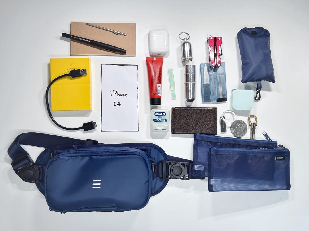 See that little blue rolled-up thing in the top right? Packable tote. If I need to buy groceries, the sling stays on my chest, and the tote carries the heavy stuff. Zero need for a daily backpack.(Image 4)