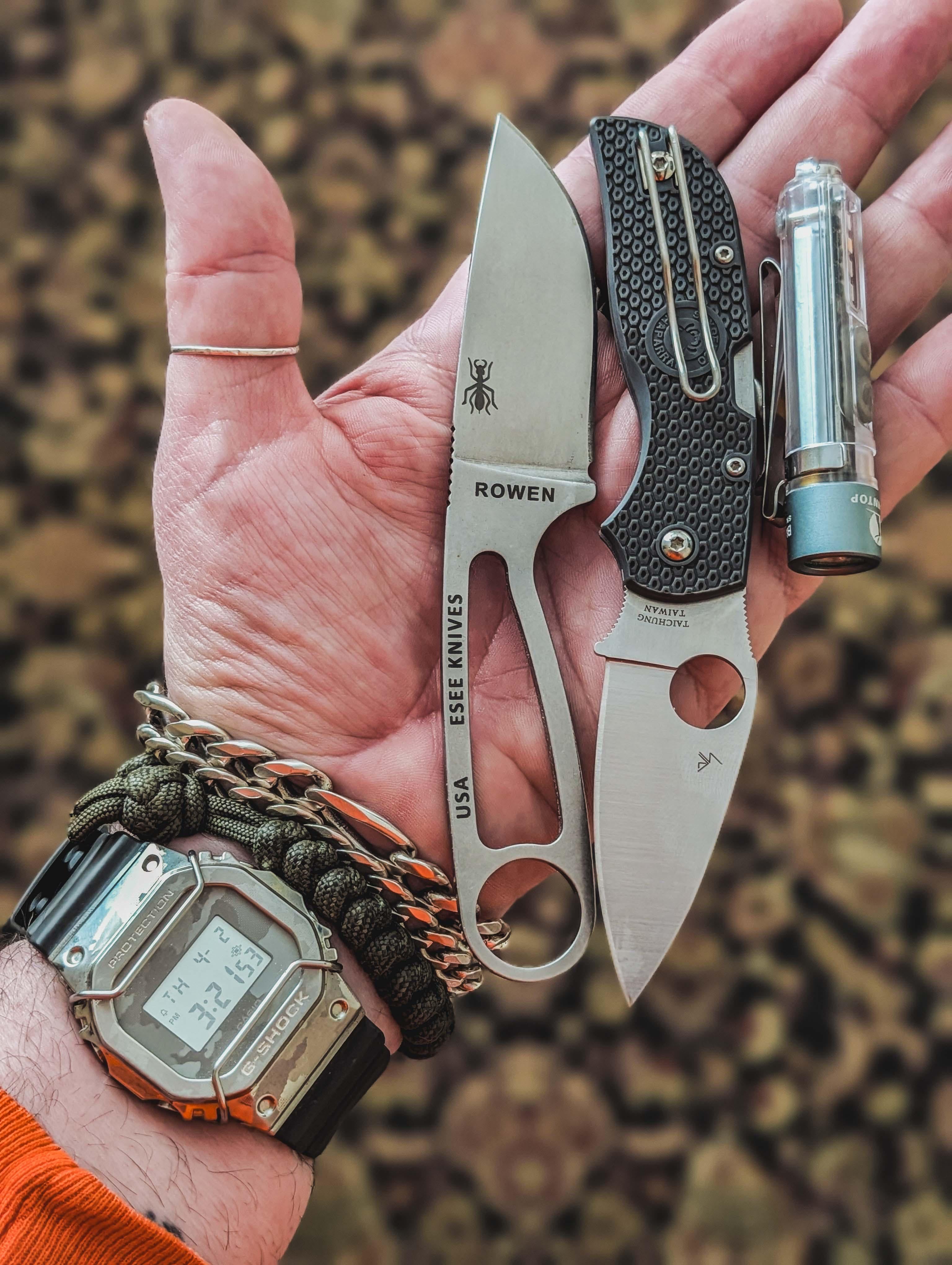 modded G-Shock GM-5600SCM, ESEE IZULA in S35VN, Spyderco Chaperel LW in CTS-XHP, Lumentop Black Cat. 🩶