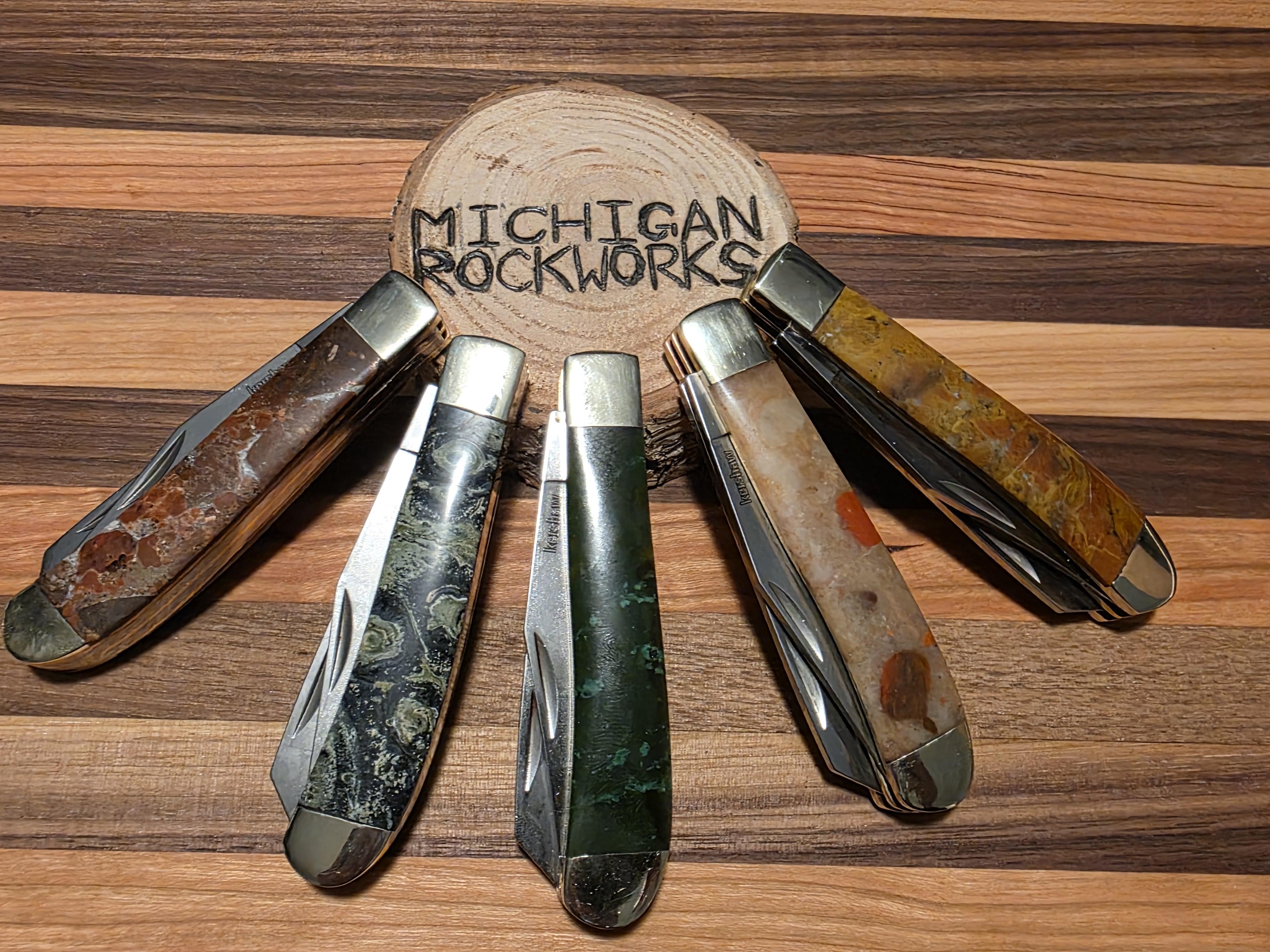 In KNIVES A few Gadsdens I made this week April 2, 2026 Copper speckled conglomerate, kambaba, nephrite jade, pudding stone and an unknown jasper/agate from left to rightby michiganrockworks KnifeKnife ClubKnives Prev Post SC13, now in color April 2, 2026 Next Post Old school millie for today April 2, 2026 Related Posts Sunday carry April 5, 2026 MANIC – N690 – post heat treatment colors – kydex – thoughts 💠April 5, 2026 MANIC – N690 – post heat treatment colors – OD green kydex April 5, 2026 1 Comment Metallurgeist 3 days ago Those rockWrite A CommentYou must be logged in to post a comment.