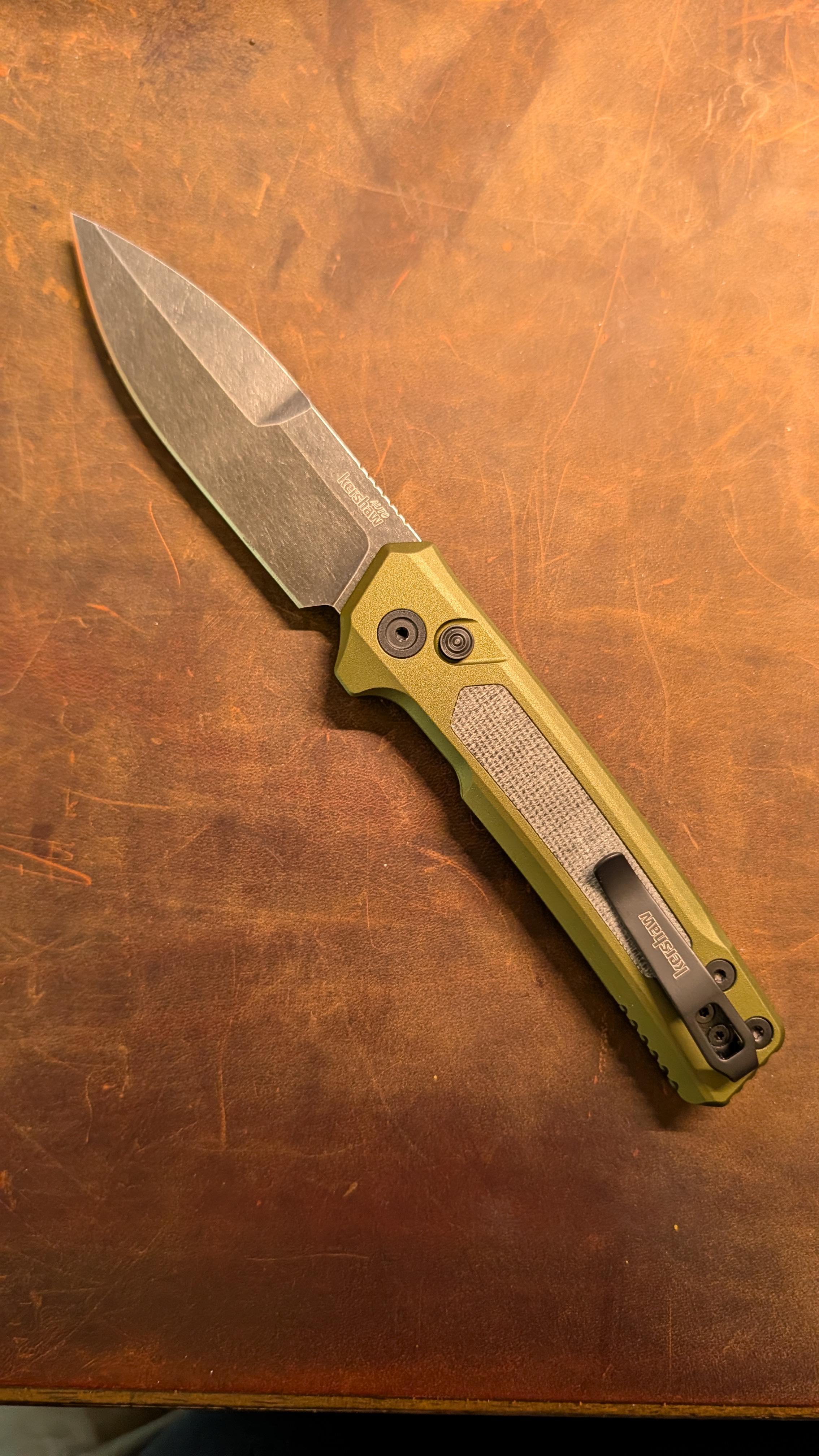 What an absolute tank of a knife. The body is about 4mm of aluminum and there is zero flex. The action is powerful and the blade comes out quick. The micarta inlays are a welcome addition for texture even if they aren't perfectly aligned to the inlets. This thing should give many years of solid service.