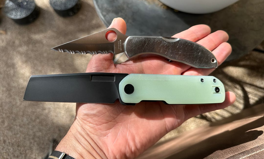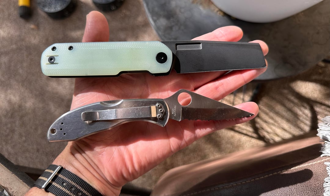 My first Spyderco Delica 4 Aus-8 Seki City, and my first Vero Engineering Axion 2 Jade G10 S45VN