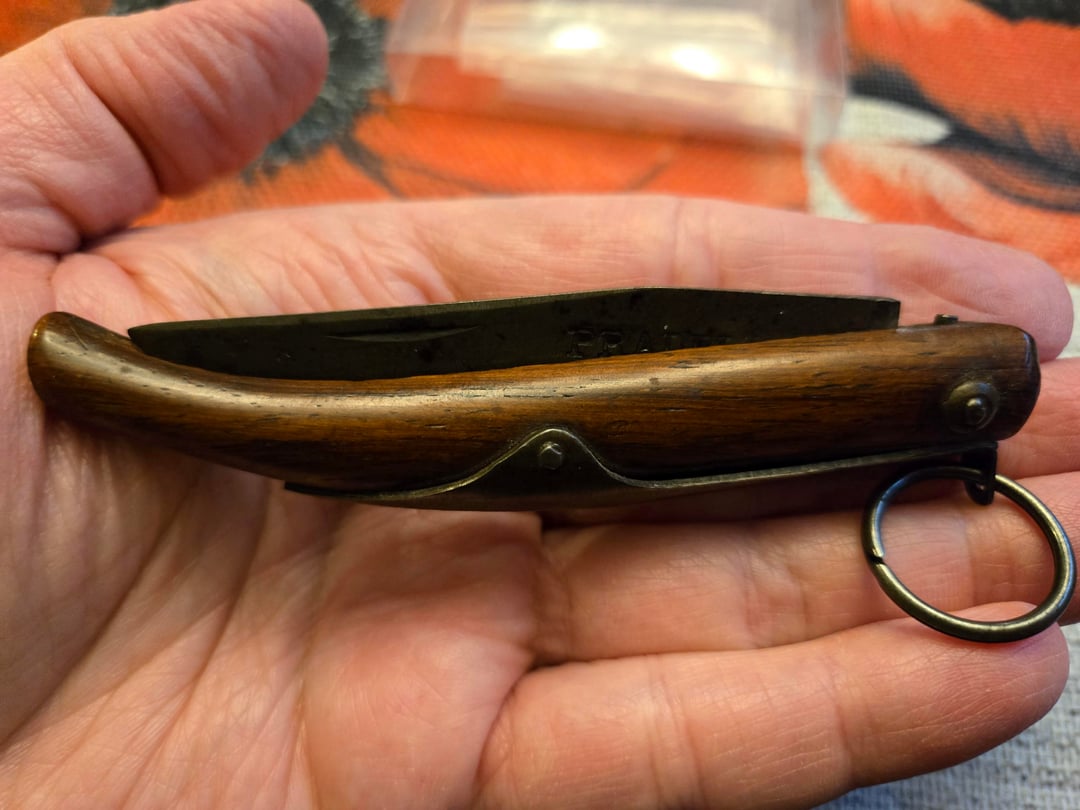 My grandfather collected knives. Some were dime store knives but many are on the fancier side of what companies sold at the time. This mahogany knife was a mid tier model for Pradel. I like the unique back strap lock. I thought I would share a few photos.