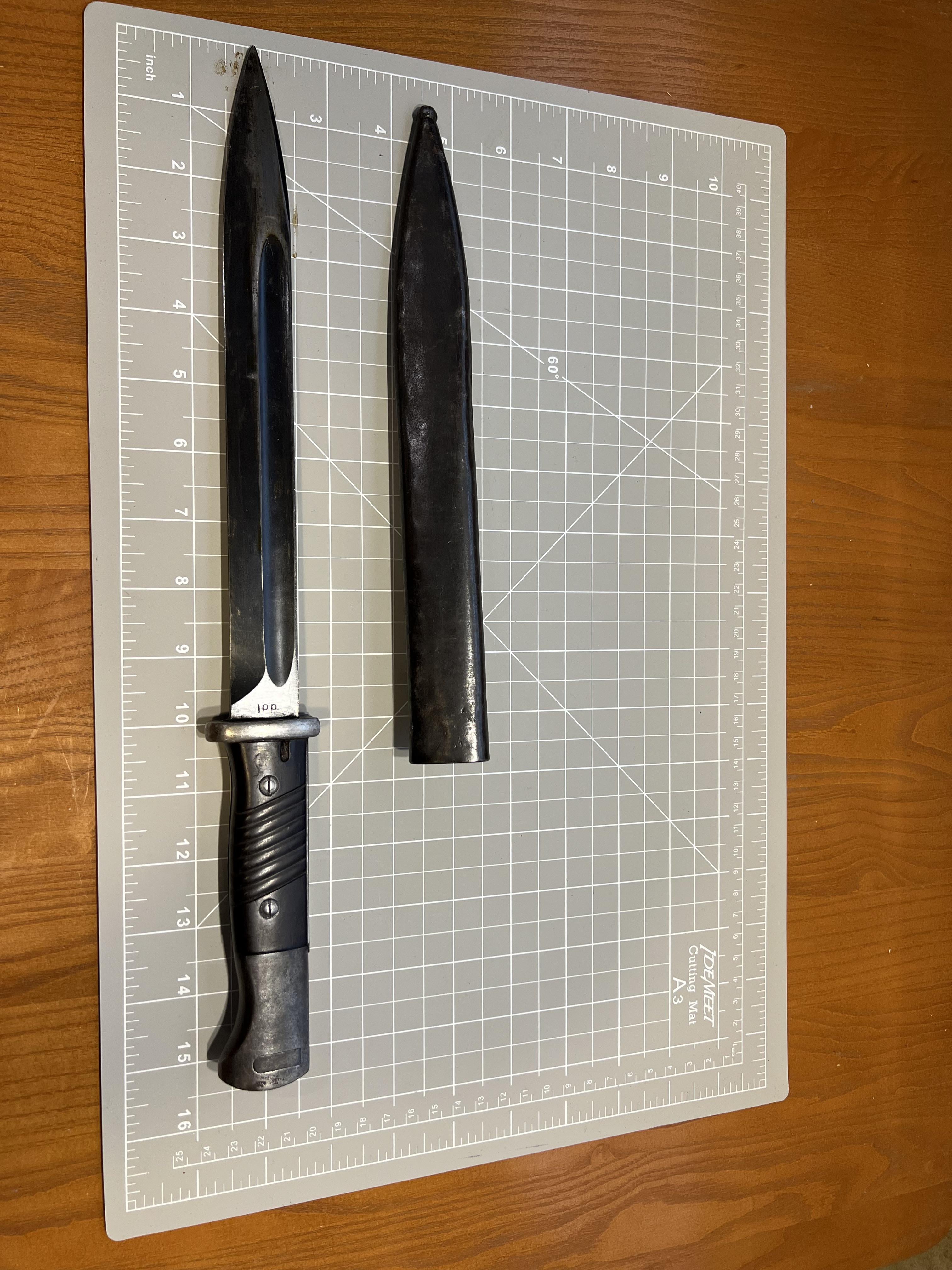 In KNIVES Bayonet ID help April 4, 2026 Tried and failed to pin down what bayonet this one is. Looks like a Mauser bayonet, but not sure. Tang stamp says ipp, ðŸ¤by WeeDingwall44 KnifeKnives Prev Post Work knife April 4, 2026 Next Post Can someone identify this flashlight? April 4, 2026 Related Posts Stabby Saturday with… Elzetta Alpha; Paragon Warlock; Hinderer Maximus; Benchmade Mini SOCP April 4, 2026 “Starlight “ fixed blade. April 4, 2026 NKD- Fixed Day Friday! April 4, 2026Write A CommentYou must be logged in to post a comment.