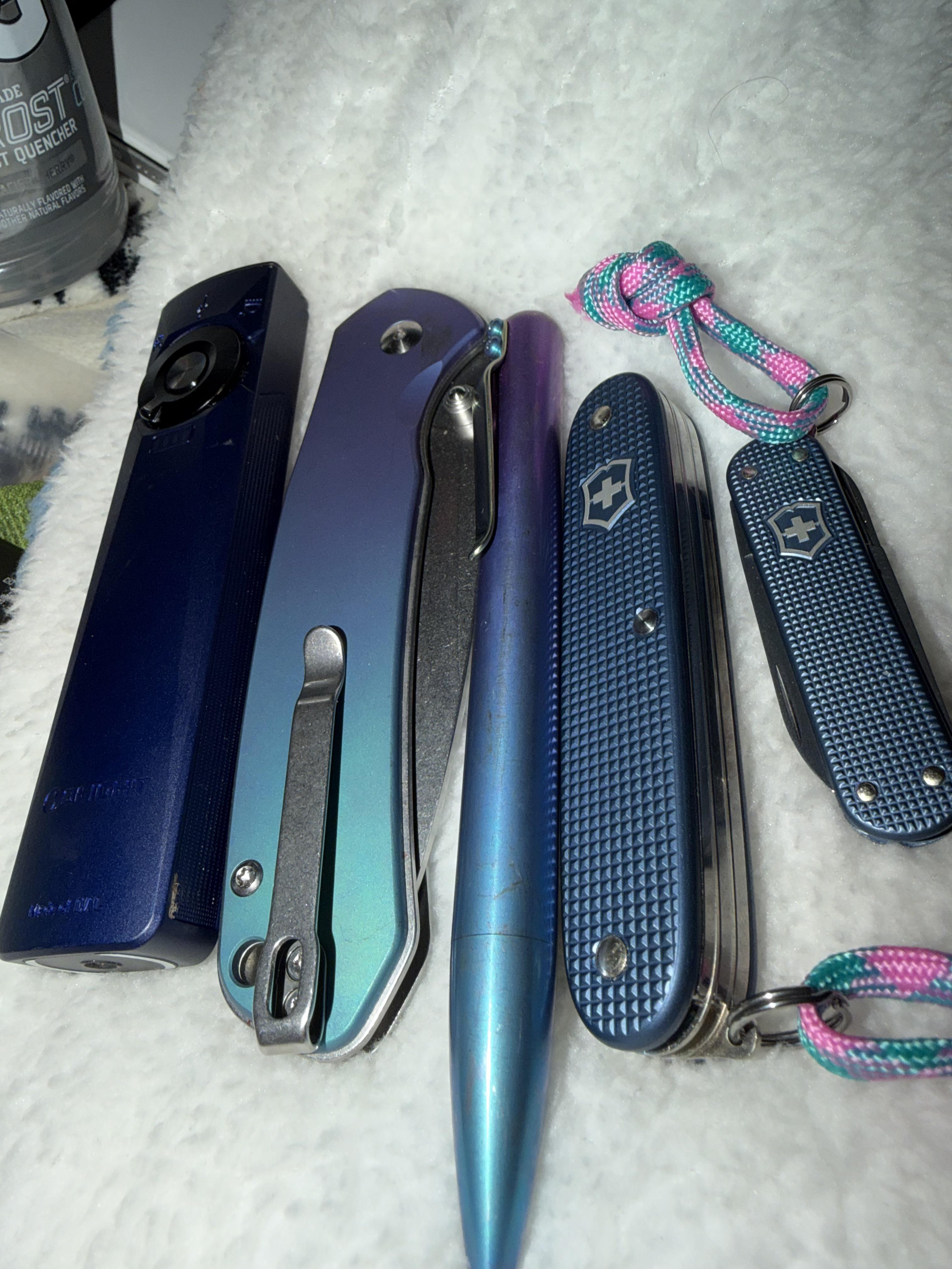 In EDC My stuff April 4, 2026 Anodized carry! Details to follow:Arkflied Olight ProGlacier Swiss Army knives x2Bastion PenCJRB Anno’d button lock knifeby Ok_House_4296 EDC Prev Post The mule of mine. Fireflies L60🤎 April 4, 2026 Next Post Buying knives leads to buying more knives.. April 4, 2026 Related Posts Steel Pocket Pen Options April 11, 2026 I like black. 37m entrepreneur/engineer. April 11, 2026 Always with me ! April 11, 2026 2 Comments AutoModerator 1 week ago Thank you for posting to r/EDC! Include a detailed item list (make/model) within **1 hour** of submission. Lists can go in the title, a comment, or the image. Posts without lists will be removed. If you have already provided a list, not further action is needed, thanks | [FAQ](https://www.reddit.com/r/EDC/wiki/faq)*I am a bot, and this action was performed automatically. Please [contact the moderators of this subreddit](/message/compose/?to=/r/EDC) if you have any questions or concerns.* Ok_House_4296 1 week ago Glacier Alox 2x have taken place of my multi toolWrite A CommentYou must be logged in to post a comment.