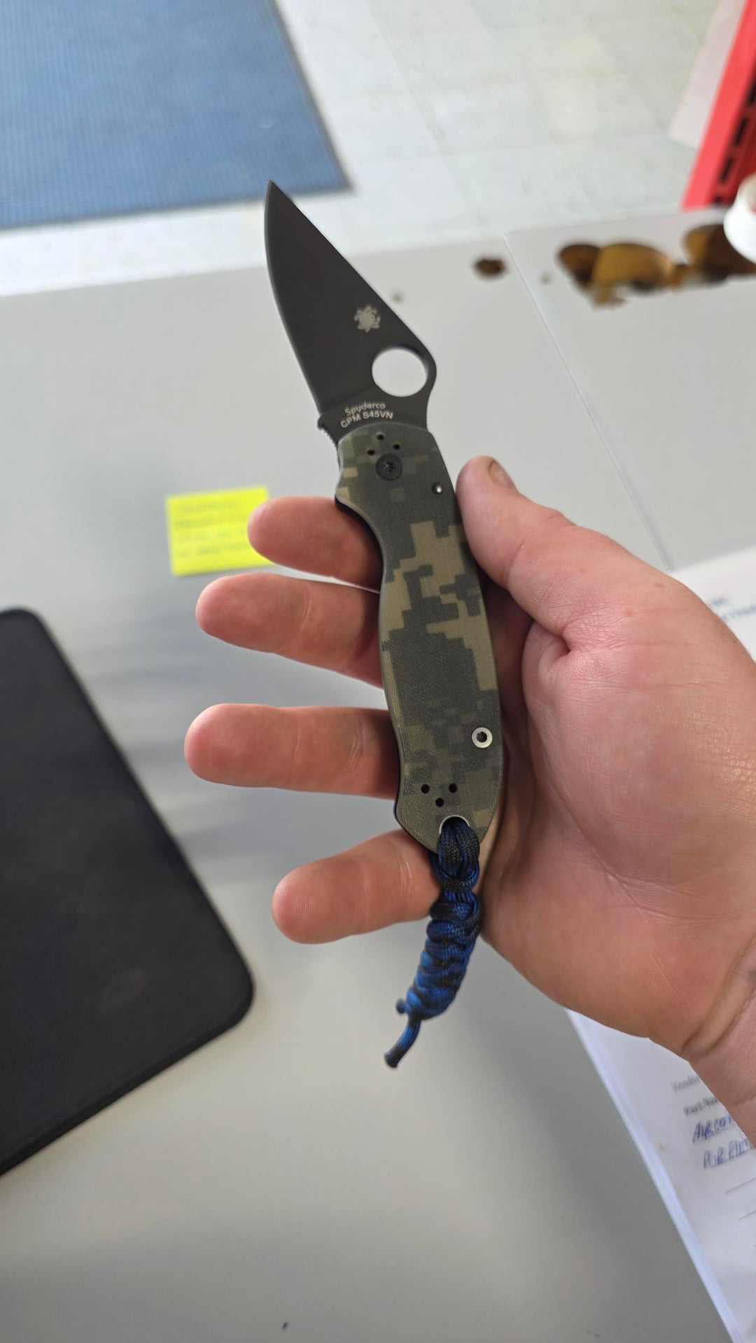 I always hated spiderco i though they were ugly and all the same. kind of like the Porsche of the knife world. I decided to get a para 3 clone on bearings and I was like ok I get it. then I got a para 2 clone on washers. it was not great. when I finally got this para 3 I was a little disappointed in the action as it was really stiff. almost immediately I swapped the scales. I like the carbon fiber ones but they were slick so I decided. I can put the g10 on the front for grip and leave the back one so it doesn't get caught on my pocket. I still didn't cary it as it had horrible lock stick. I was already invested so I made one last choice to get a new pocket clip and start carrying it on Saturdays. almost a year later I finally managed to break it in as I swap every day. its smooth now and in the last couple days I decided that I have over 150 knives I need to start using them. this is going to be my expensive Saturday work hourse now. now I just need to start using my bugout and microtech bounty hunter. also another reason the carbon scales are slick is they have no belly. you can see it in the first photo.