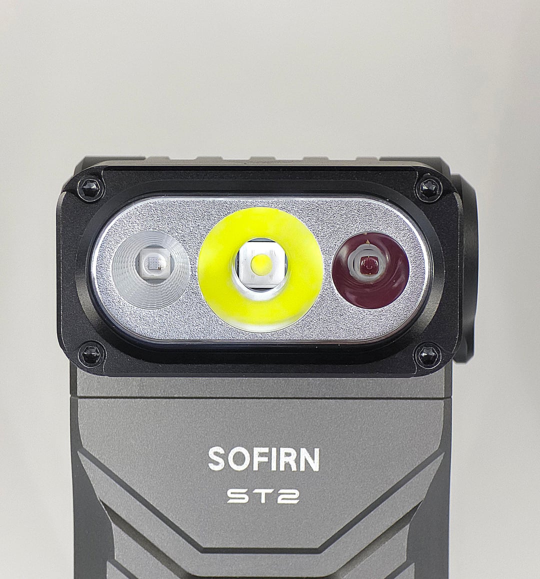 The UI is simple to use thanks to the rotary switch for selecting between white, red, and UV. The e-switch is slightly recessed in the middle of the rotary switch to help protect against accidental activation, though the ST2 does have a lockout mode (quadruple click) so it won't accidentally activate in your tool bag. Both the 3-position rotary switch and e-switch feel nice and clicky and feel really good to use.