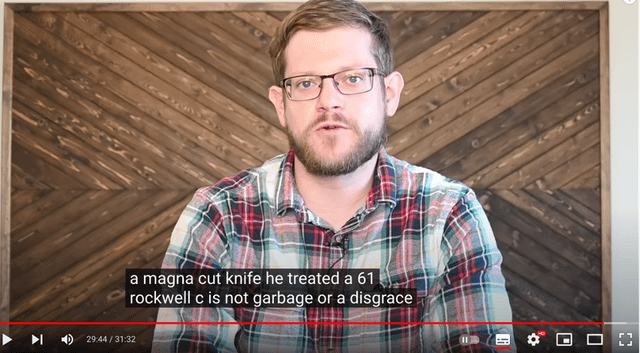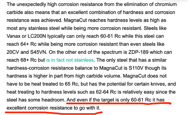 We also cited relevant information provided by the material's developer, Larrin Thomas, indicating that even just 60-61 HRC achieves the performance of MagnaCut steel. [see attached picture 8-9]