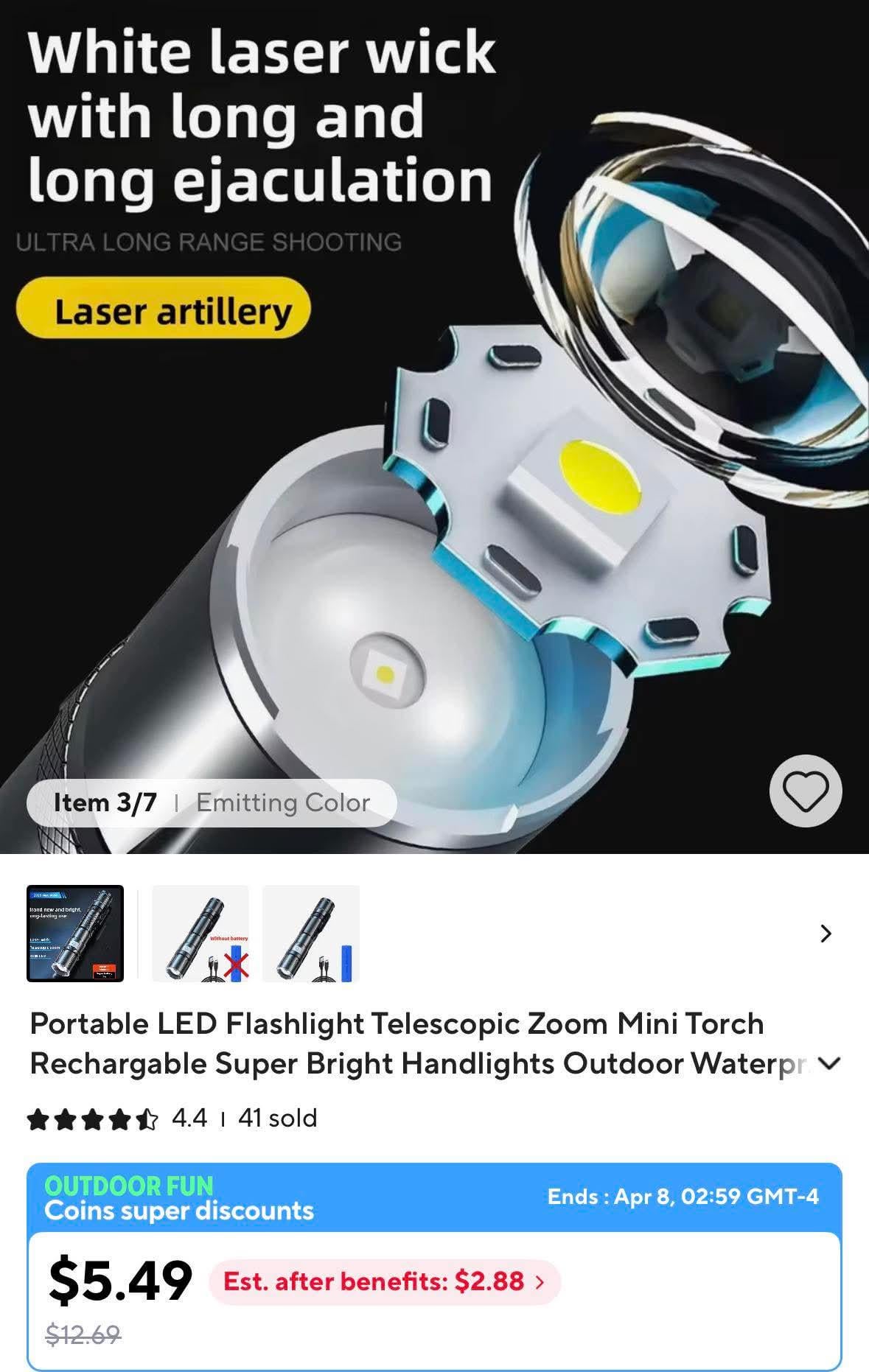 HughJohnson69 3 hours ago I already find it funny that they present lights with a list of uses, as though I need marketing to tell me that I can use a flashlight for camping, hiking, or seeing the dark.This is a whole new level.