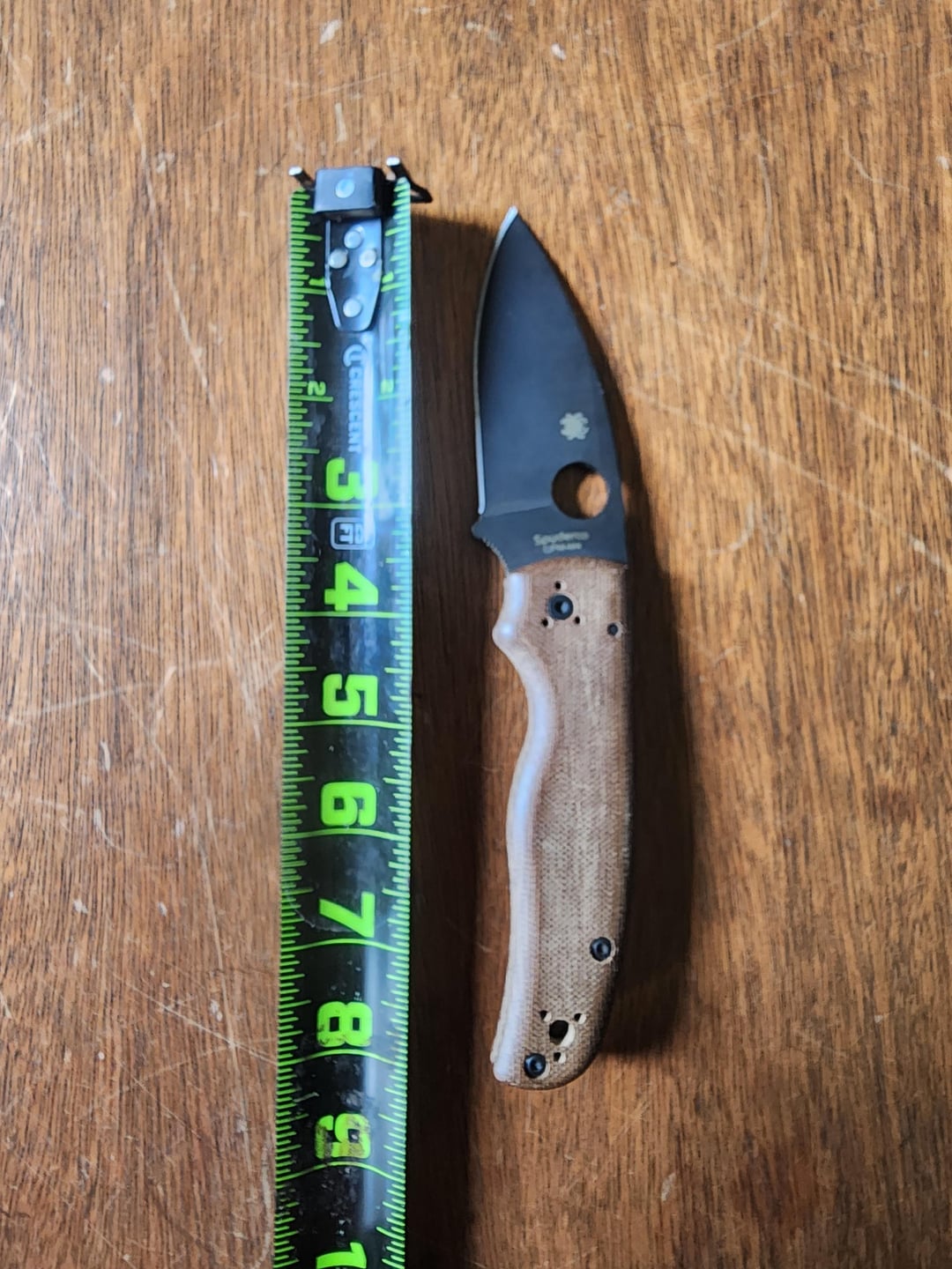 Can some identify this Spyderco for me? The blade material is M4. I bought it a few years ago and finally got around to using it. I was cutting soft plastic tubing on a plastic cutting board and it picked up some damage. I'm guessing something may be wrong with the heat treat. I want to call Spyderco and see if I can't get the blade replaced. I dont want to remove all that material to get the edge back to normal.