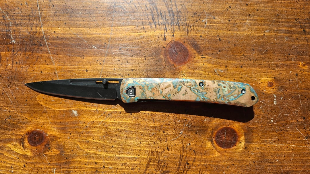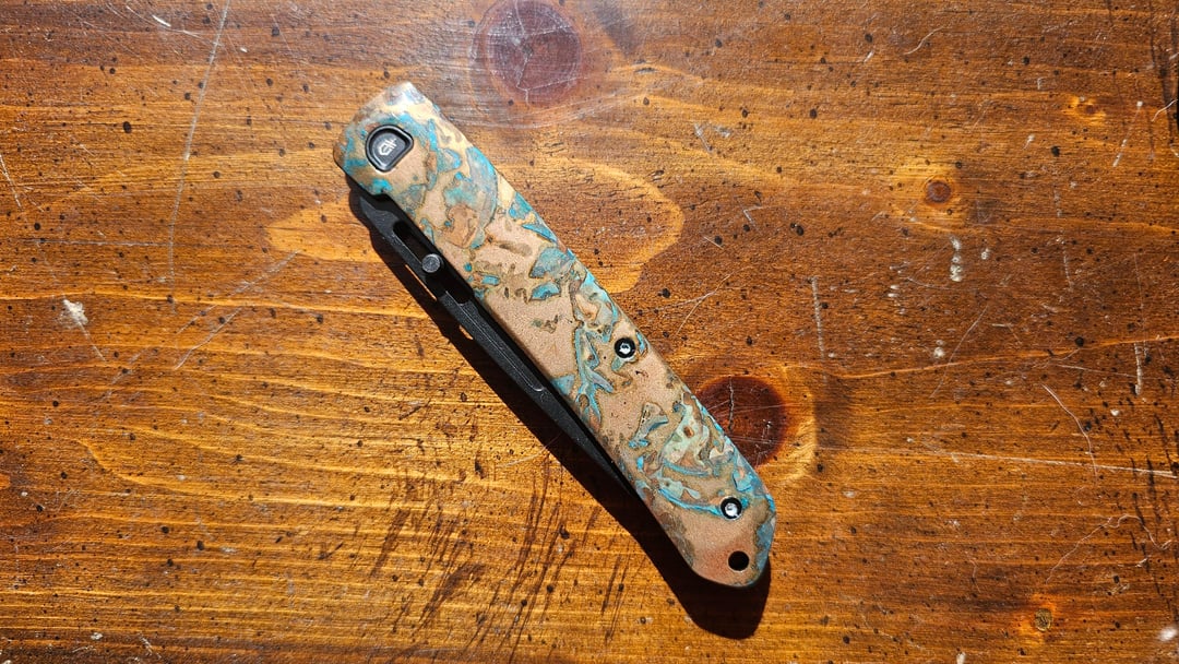 Got a cheap copper scaled Gerber from my local hardware store to try this before my Kershaw Natrix gets in. Followed all the steps I found online but only left it in for about 20 hours instead of longer. all in all im happy with the result, the blue and green really pops in the sunlight.