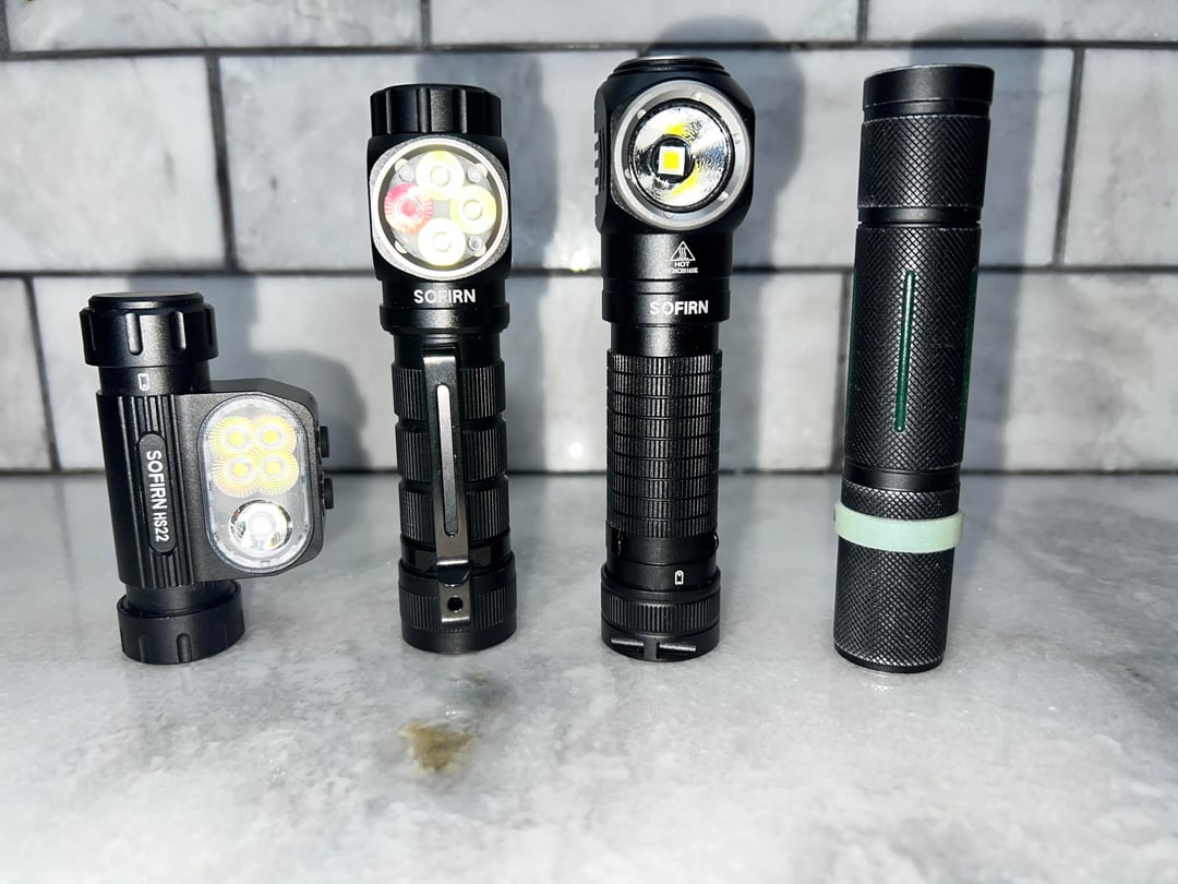 Sofirn claims a max 3200lm and it can sustain 1500lm for 2.5 hours and 75lm for 210 hours. That with a 223m of throw all sounds amazing. I don’t have any way to test that, but again, they haven’t given me reason to question their claims yet. It can hold a very bright turbo for a long amount of time without significant step down. The fan does seem to help but it still gets pretty warm. Though not too warm to have on your forehead. When switch from pocket light to headlamp the pocket clip does seem to get in the way a little, but it doesn’t make it impossible. That is an area where there could be improvement.