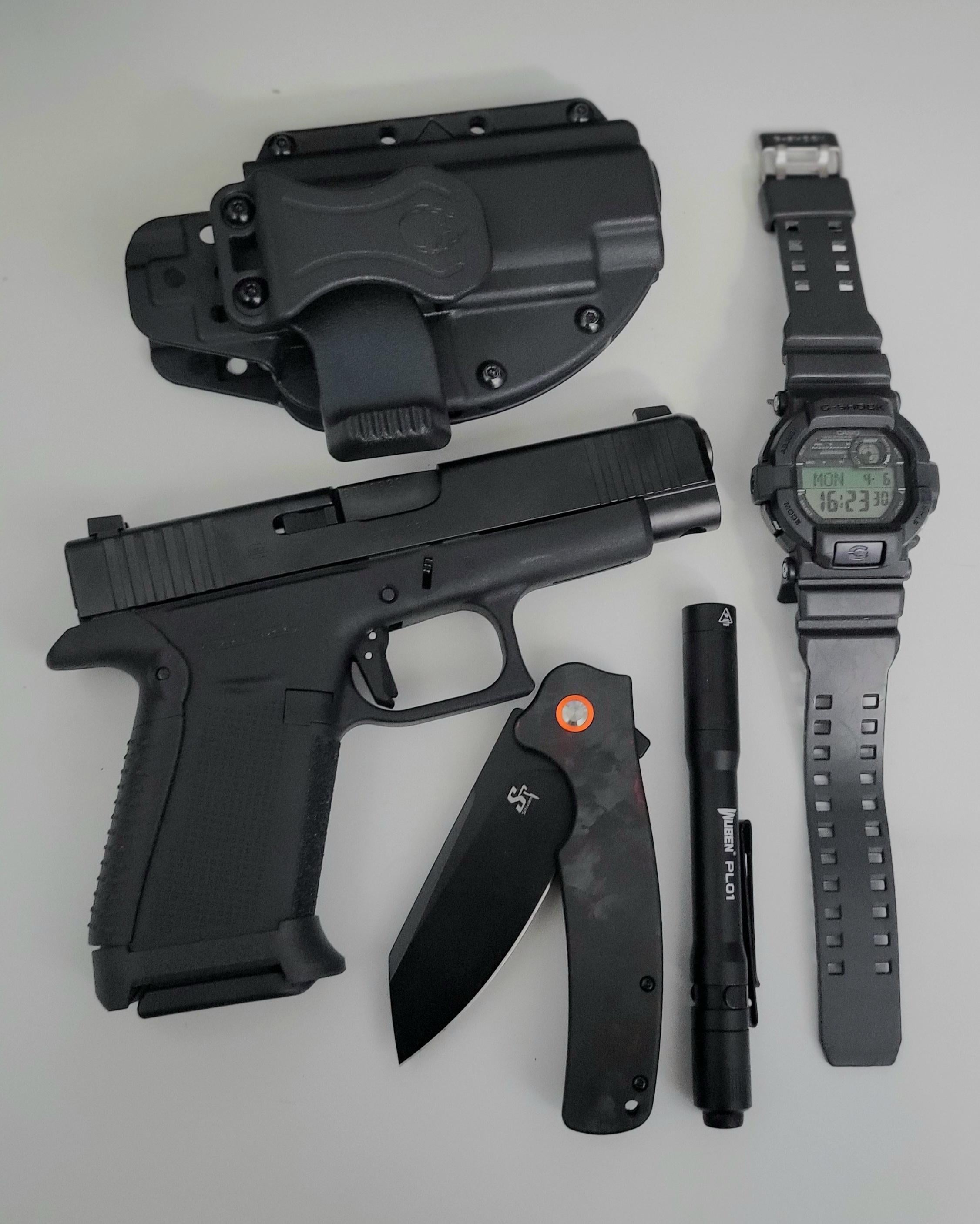 In EDC Current EDC Spring 2026 April 6, 2026 – Glock 48 in an AlienGear holster, with ArmaTech Ind. backstrap & magwell, Daniel Fitch EDComp trigger shoe, TruGlo Tritium X night sights– G-Shock GD-350 – Wuben PL-01– Sitivien ST3by harkearean EDC Prev Post Is this a good first knife? April 6, 2026 Next Post Scared to know what you all think lmao April 6, 2026 Related Posts Code red ♥️ April 13, 2026 Do you have a utility knife collection, or are you normal? April 13, 2026 My daily beater edc April 13, 2026 2 Comments AutoModerator 6 days ago Thank you for posting to r/EDC! Include a detailed item list (make/model) within **1 hour** of submission. Lists can go in the title, a comment, or the image. Posts without lists will be removed. If you have already provided a list, not further action is needed, thanks | [FAQ](https://www.reddit.com/r/EDC/wiki/faq)*I am a bot, and this action was performed automatically. Please [contact the moderators of this subreddit](/message/compose/?to=/r/EDC) if you have any questions or concerns.* Practical-Use-6522 6 days ago How do you like that flashlight? It looks great.Write A CommentYou must be logged in to post a comment.