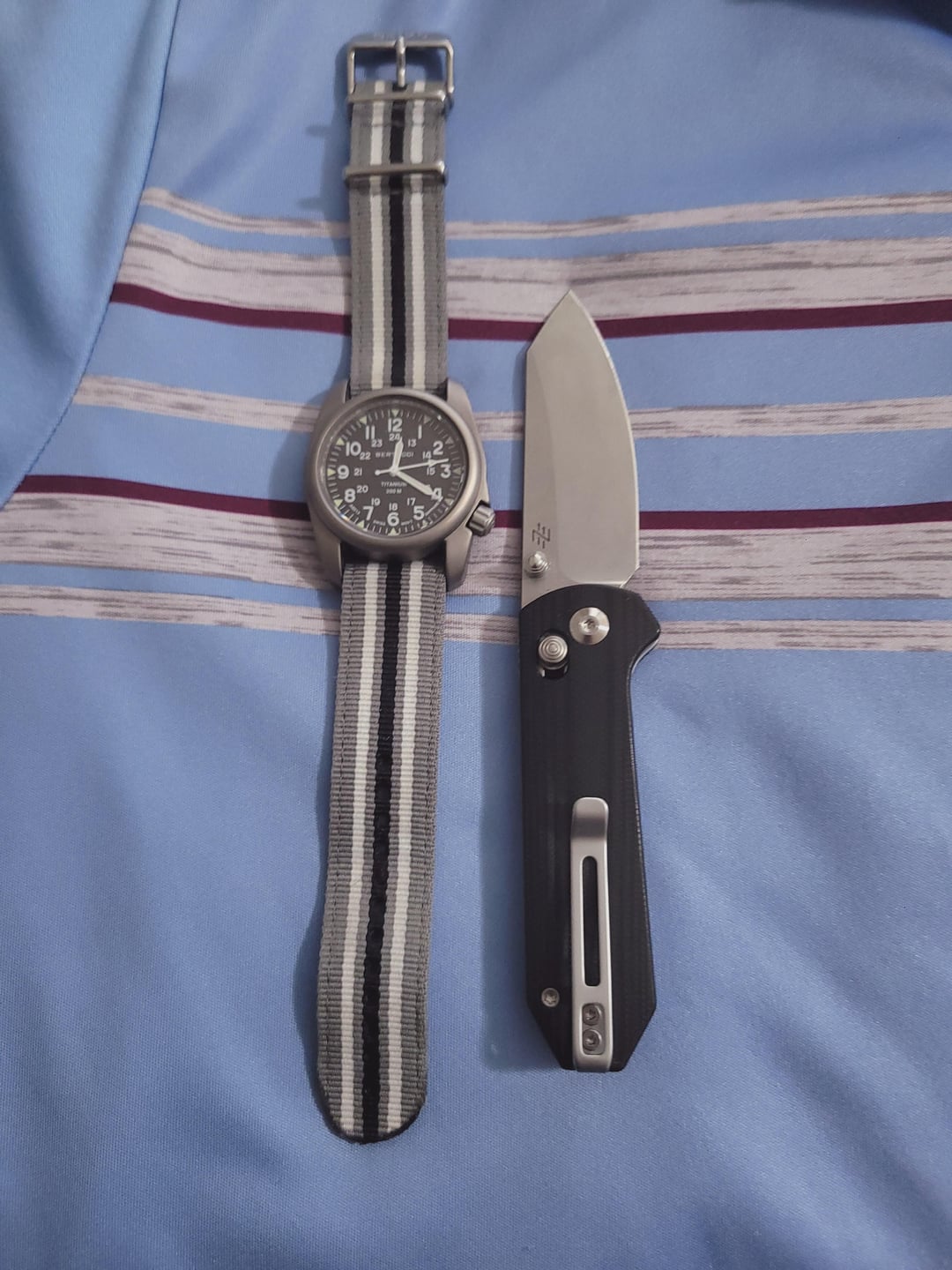 I have the knife in green and tumbled I believe and I love it and I normally rock my Seiko 5 sport snk809 but that watch is beautiful and kinda calling my name