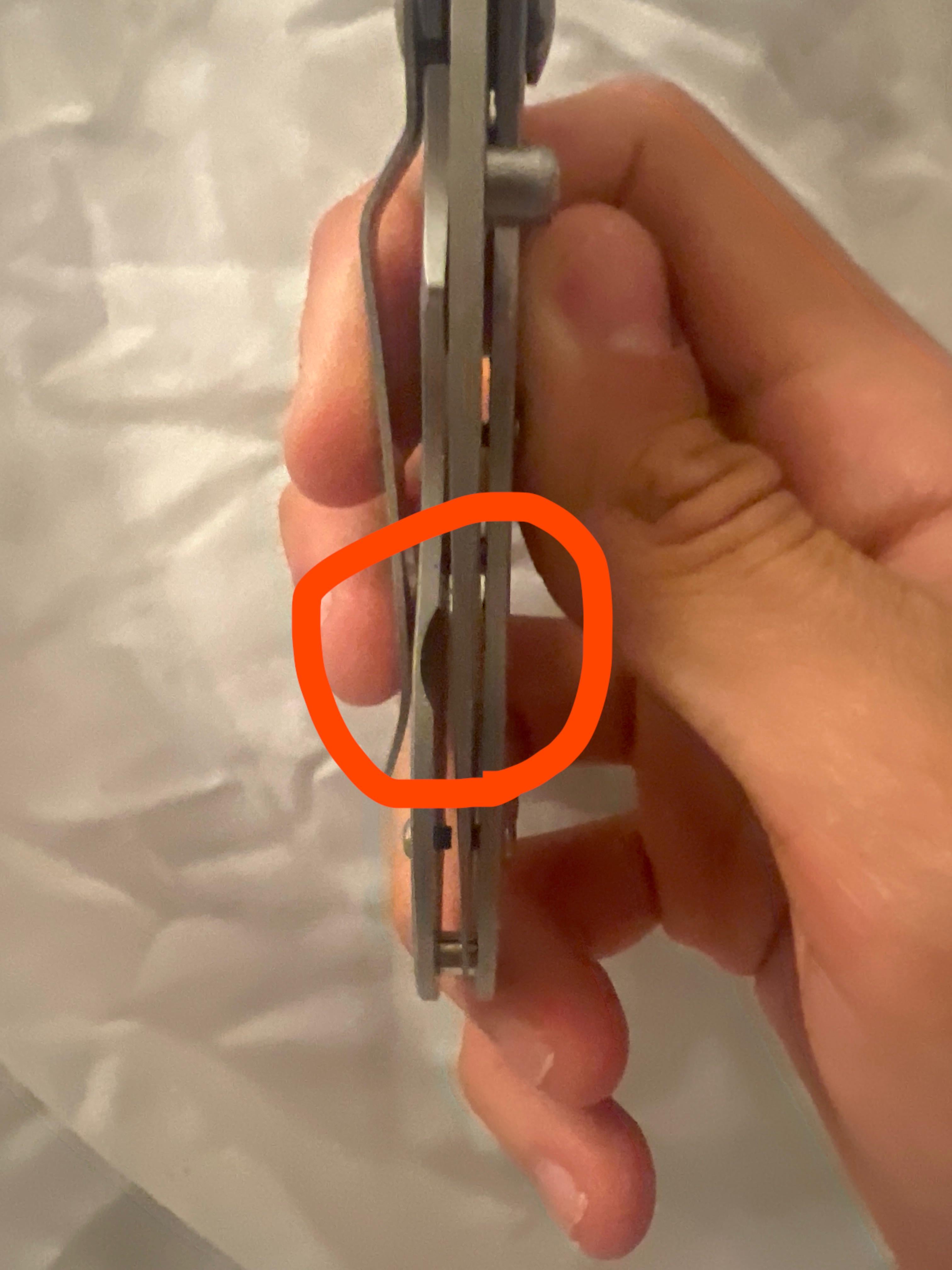 Since it’s a frame lock knife, that portion of frame above the cutout has to move in and out to lock and unlock the blade. If the cutout were not there and that piece of frame was solid, it would take a considerable amount of force to flex.