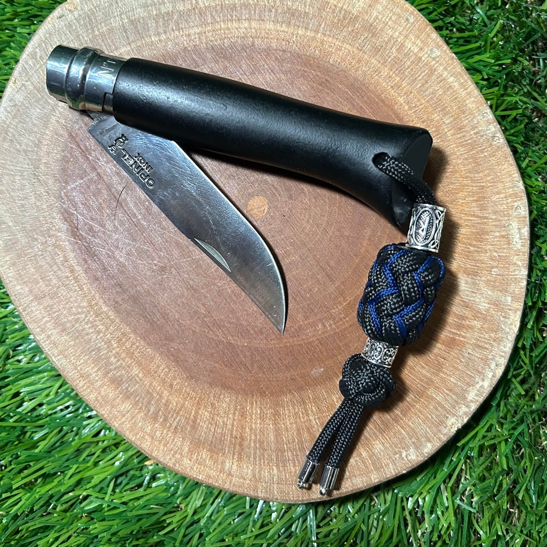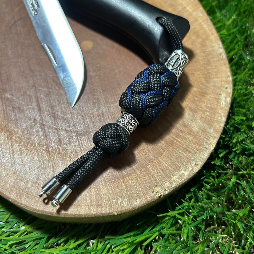Paracord Lanyard : Bead – Gaucho (Navy Stitch) – Bead – Diamond Knot – 4mm cord end cap