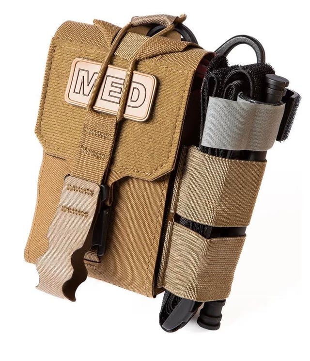 I’m looking to add a very bare bones quick deploy trauma kit to my sling bag, preferably something with hook on the back and that can be attached/detached to the loop inner lining.