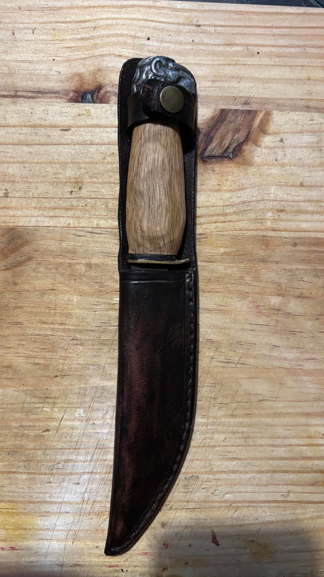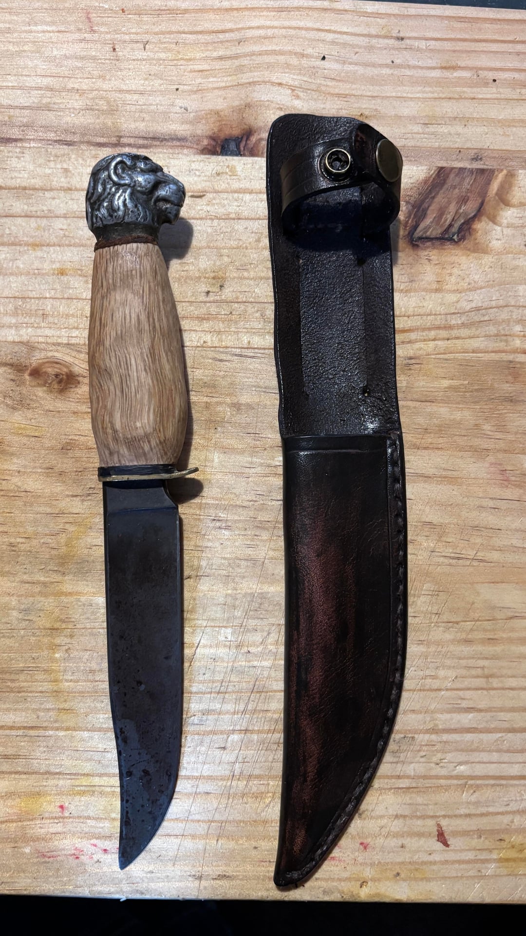 I decided to give it a bit of TLC. The photos show the result. A friend and fellow knife enthusiast made the leather sheath for me as a gift.