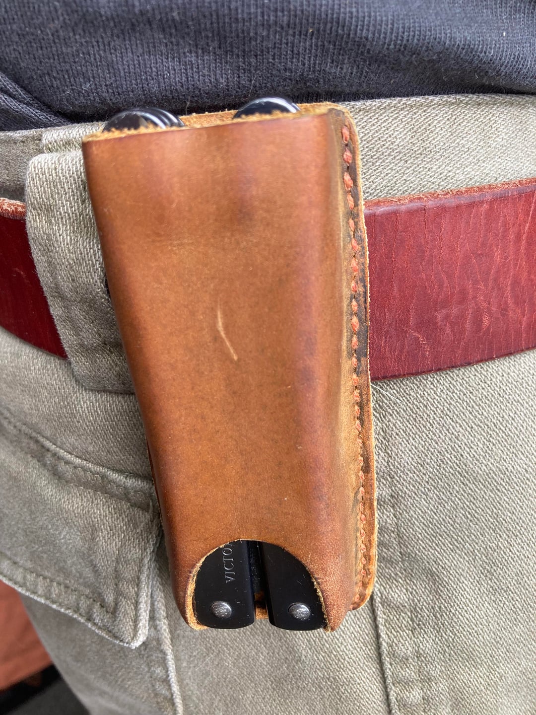 Been working on this multi direction holster for my Victorinox XBS. Testing it everyday day for about 6 months now. It’s been awesome to have the ability to change up how I carry depending on the outfit/environment. Have a few tweaks in mind for the next iteration. What do you all think? What would you change/add?