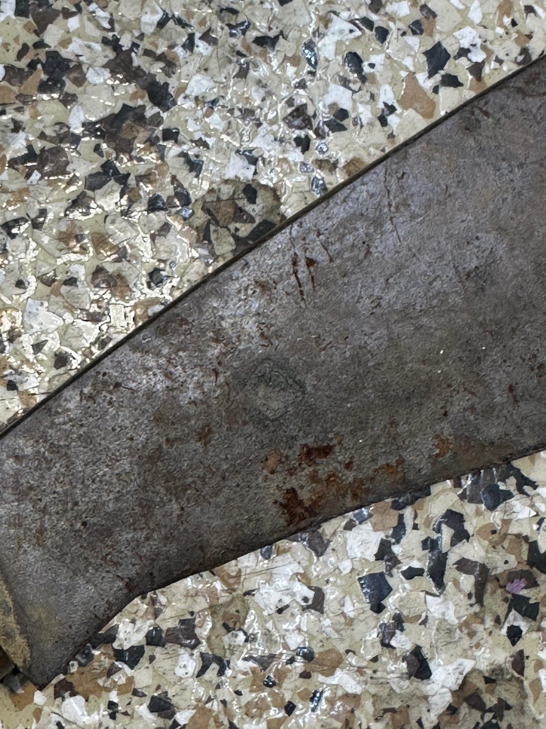 I’d scrub the metal with the rough side of a kitchen sponge and generous mineral oil just to get the red rust off. Nothing invasive. It’s an antique at this point even if it’s a simple tool.