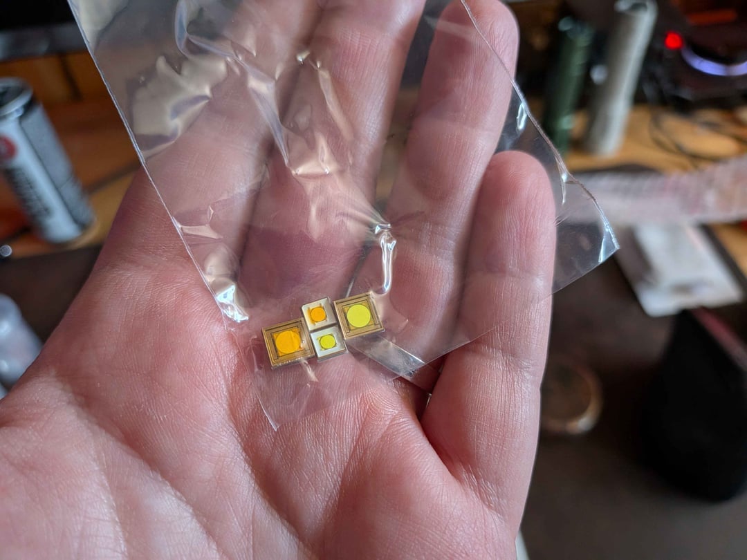 Got both emitters types in 6500K and 3000K, they have standard 5050 and 7070 footprints respectively. The 42R is 6500K.