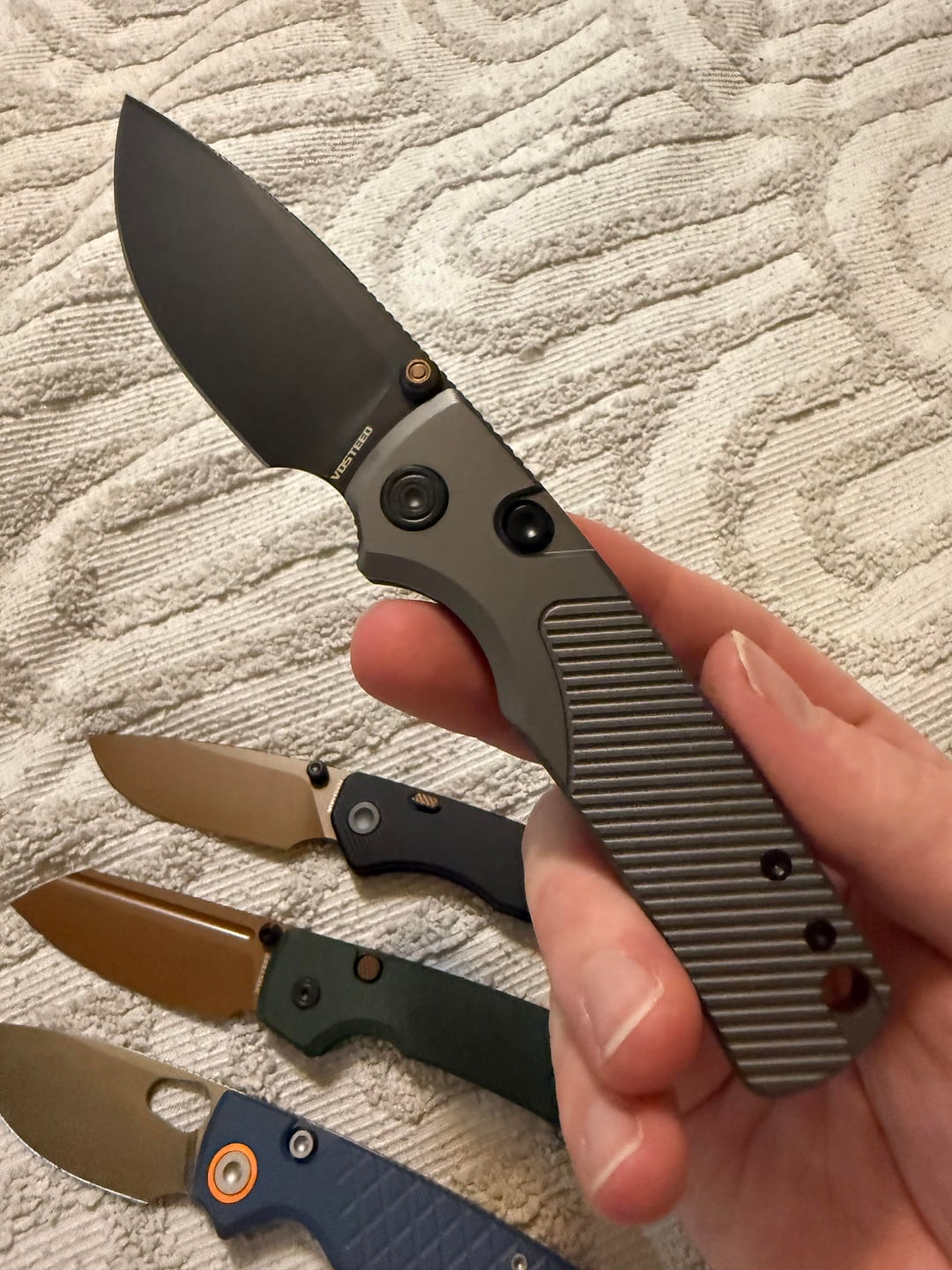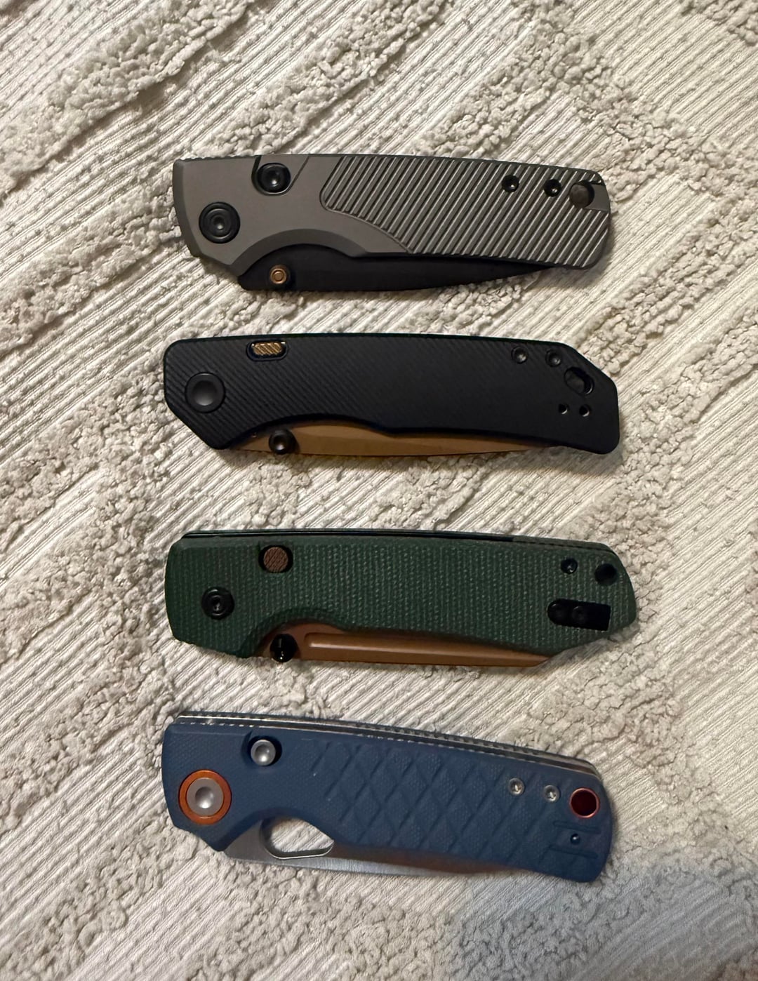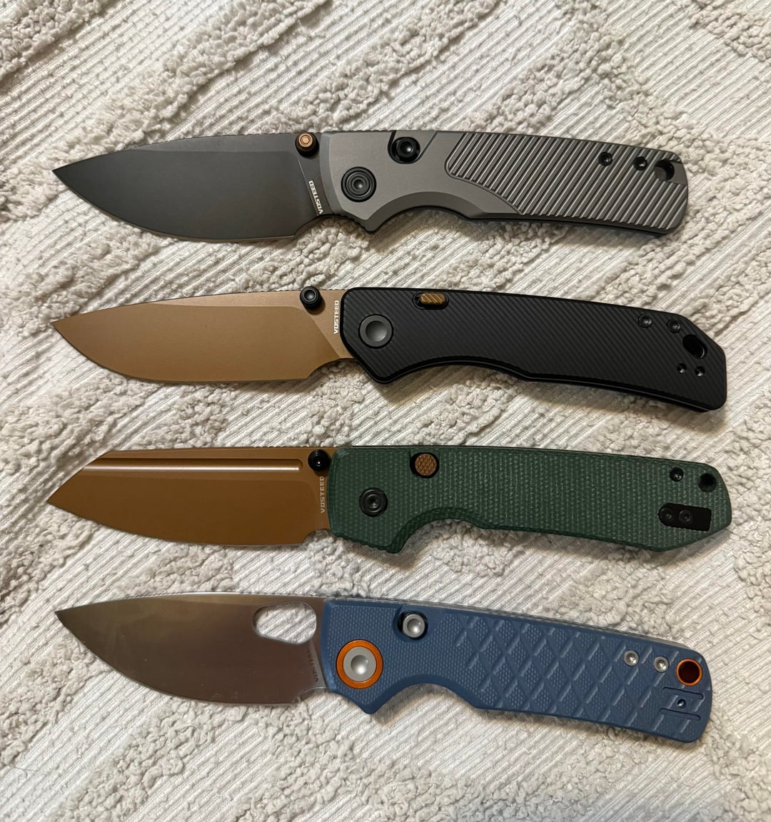 Porcupine in G10, Raccoon 2.0 in Micarta, Marten 330 in Aluminum, and Porcupine Tislim in Titanium. It’s a close race between the Marten 330 and Porcupine Tislim for me. Marten is more comfortable imo, and has a good balance between EDC and premium feeling weight. Tislim is a just a beast, ultra thin and lightweight, perfect work carry for me. Let me know which one you like the most!