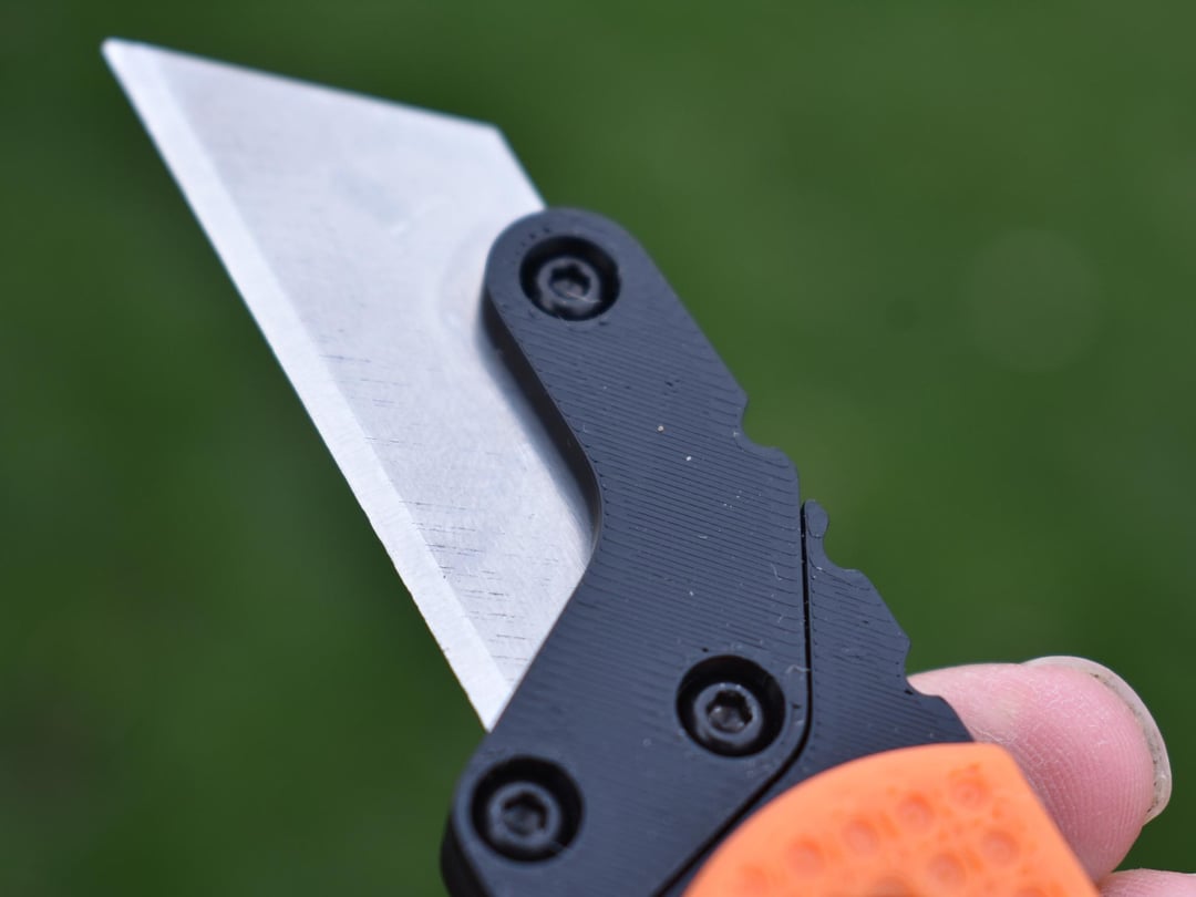 The reasoning behind this design is that most other locking mechanisms though they work great in steel when you make them using 3d printing they wear out vary fast and gain a lot of play in them so when I found the friction folder design I knew that I had to make it and so I made it and it's the strongest folding 3d printed I have made to date. Also more UK friendly even though I do not live there.