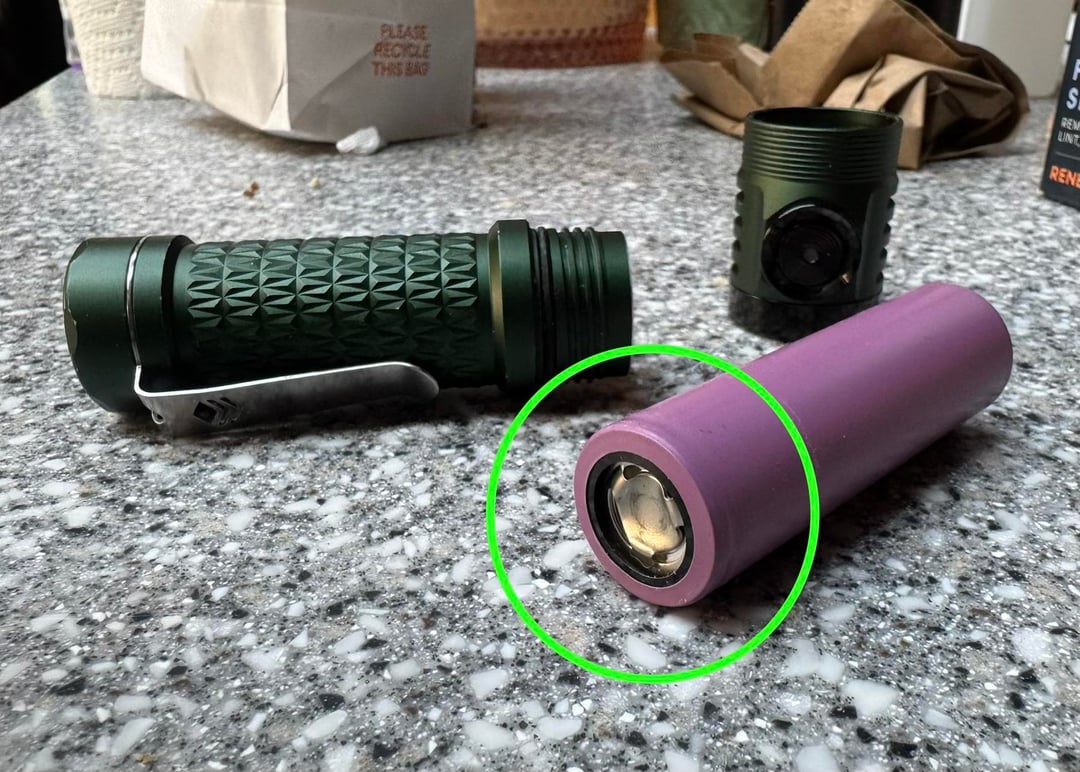 Pulled out my 21700 for a charge and realized it won’t charge because the spring in my X4Q Comet pushed down this section of the battery. Anyone have prior experience with this?