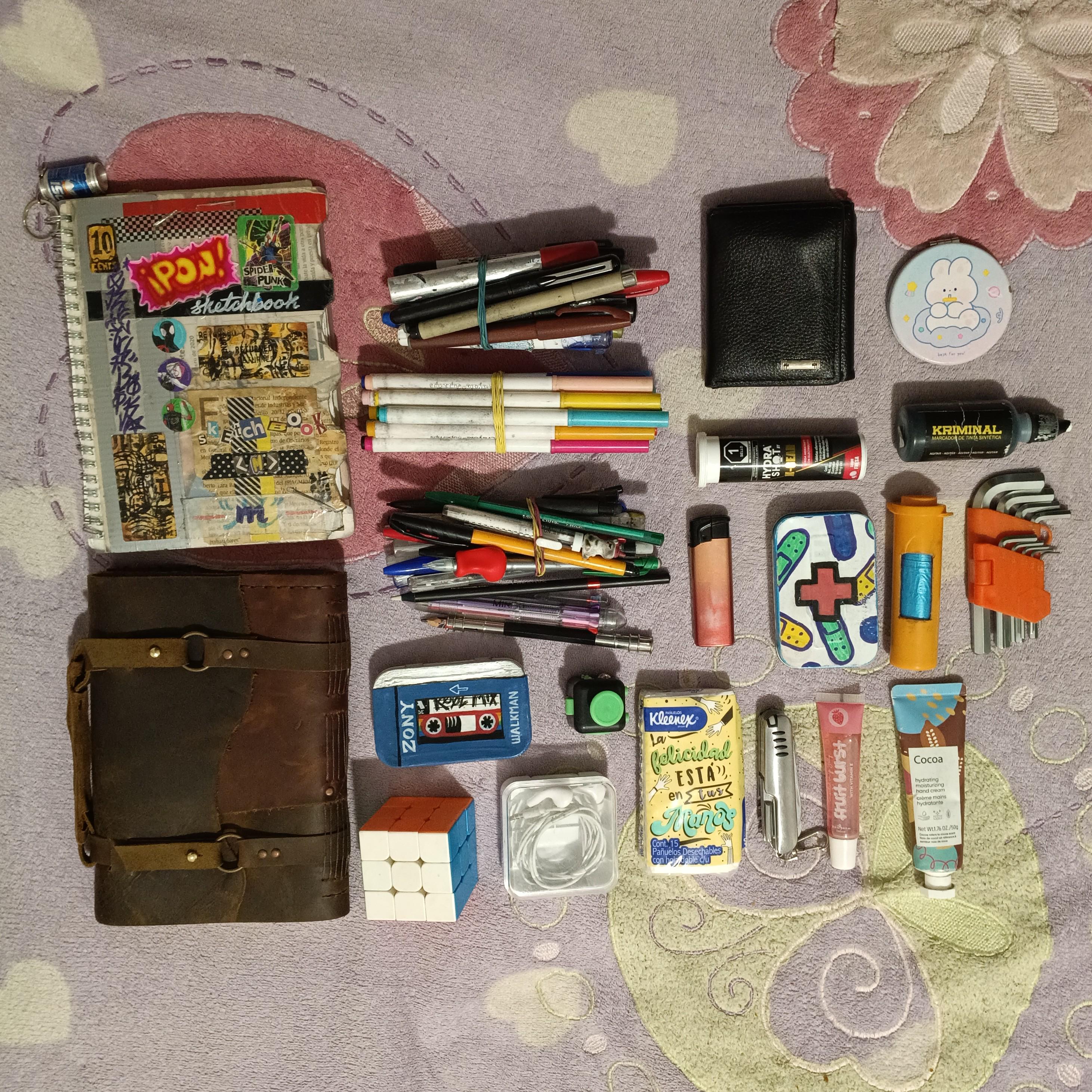 I carry this everyday in my backpack and my pockets, depending on what I'm doing or where I'm going everyday I take out or add things but this is pretty much it.