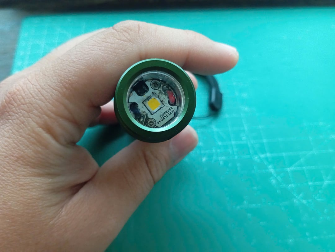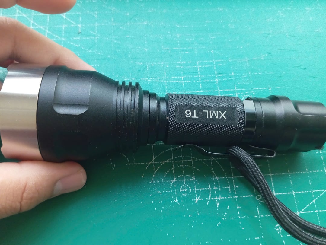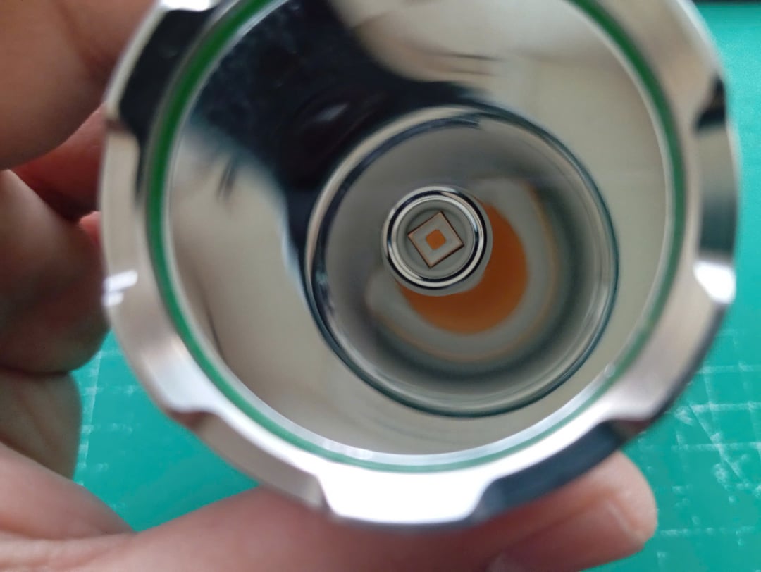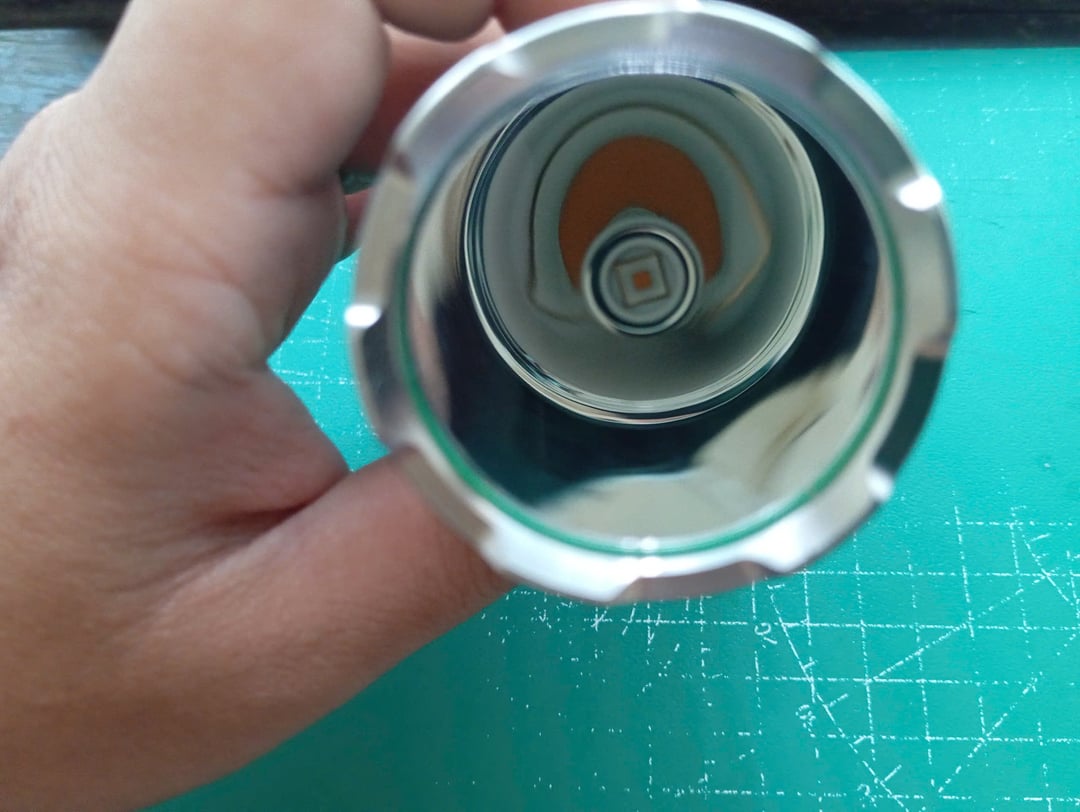 This is a modified C8 flashlight (not a Convoy one) with a stainless steel bezel, an 8A driver, and an SFT40 3000K LED. For the SC18, the SFT40 LED is replaced with an LHP531 4000K LED, and the TIR lens is removed. Instead, I've included an AR-coated glass from a Convoy S2+ flashlight.
