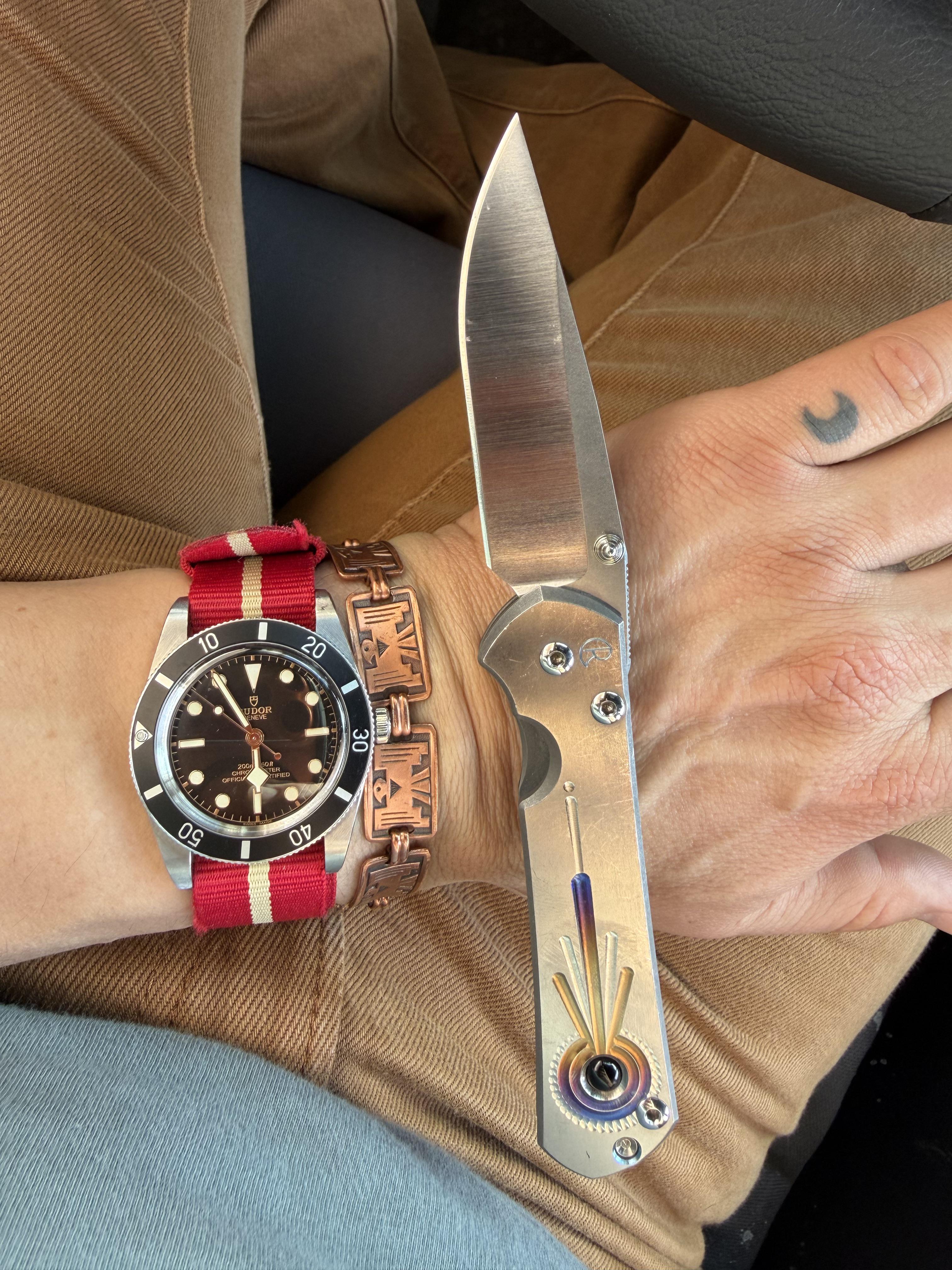 In EDC Tudor Black Bay on Nato Strap with Mini Sebenza April 14, 2026 Tudor Black Bay on Nato Strap with Mini Sebenzaby W1SEA55 EDC Prev Post I own bigger lights, but these were the ones I carried April 14, 2026 Next Post Waiting for darkness… April 14, 2026 Related Posts EDC stoner granny purse edition April 14, 2026 The keys wouldn’t cooperate April 14, 2026 Pocket check April 14, 2026 1 Comment AutoModerator 21 hours ago Thank you for posting to r/EDC! Include a detailed item list (make/model) within **1 hour** of submission. Lists can go in the title, a comment, or the image. Posts without lists will be removed. If you have already provided a list, not further action is needed, thanks | [FAQ](https://www.reddit.com/r/EDC/wiki/faq)*I am a bot, and this action was performed automatically. Please [contact the moderators of this subreddit](/message/compose/?to=/r/EDC) if you have any questions or concerns.*Write A CommentYou must be logged in to post a comment.