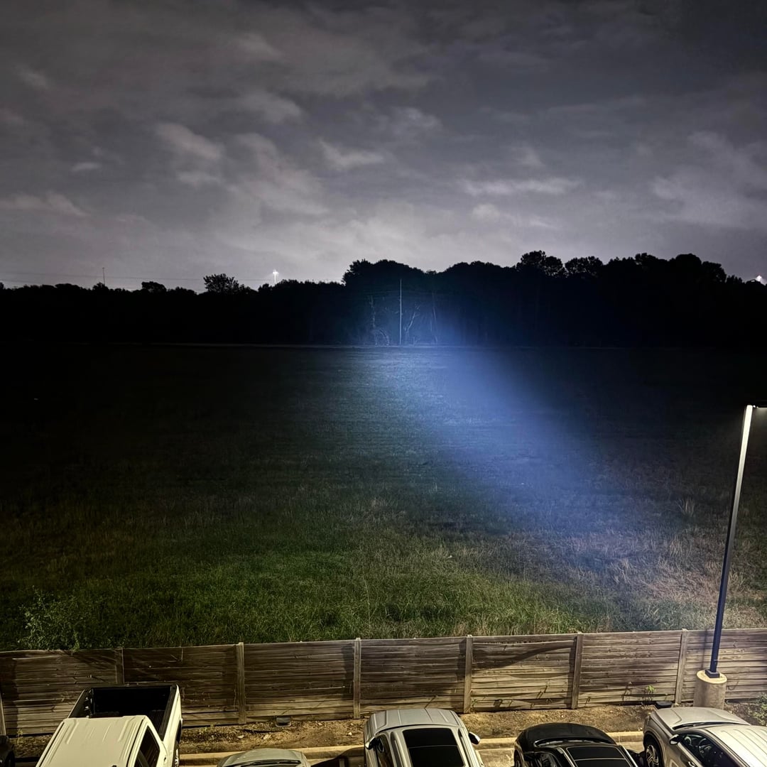 Not much info out there on this new emitter. The T6 seems like an optimal pairing for it due to less of a lumen increase when you add more power (only 5amp driver compared to the more common 8amp drivers), and in exchange it stays very cool. The whole range of light is very usable, I would recommend the 100 – 35 – 10 – 1% power config. 35% gives about 150m of throw with great detail, and as seen in my photos 100% is usable to at least 200m (how far away the trees are in my beam shot)