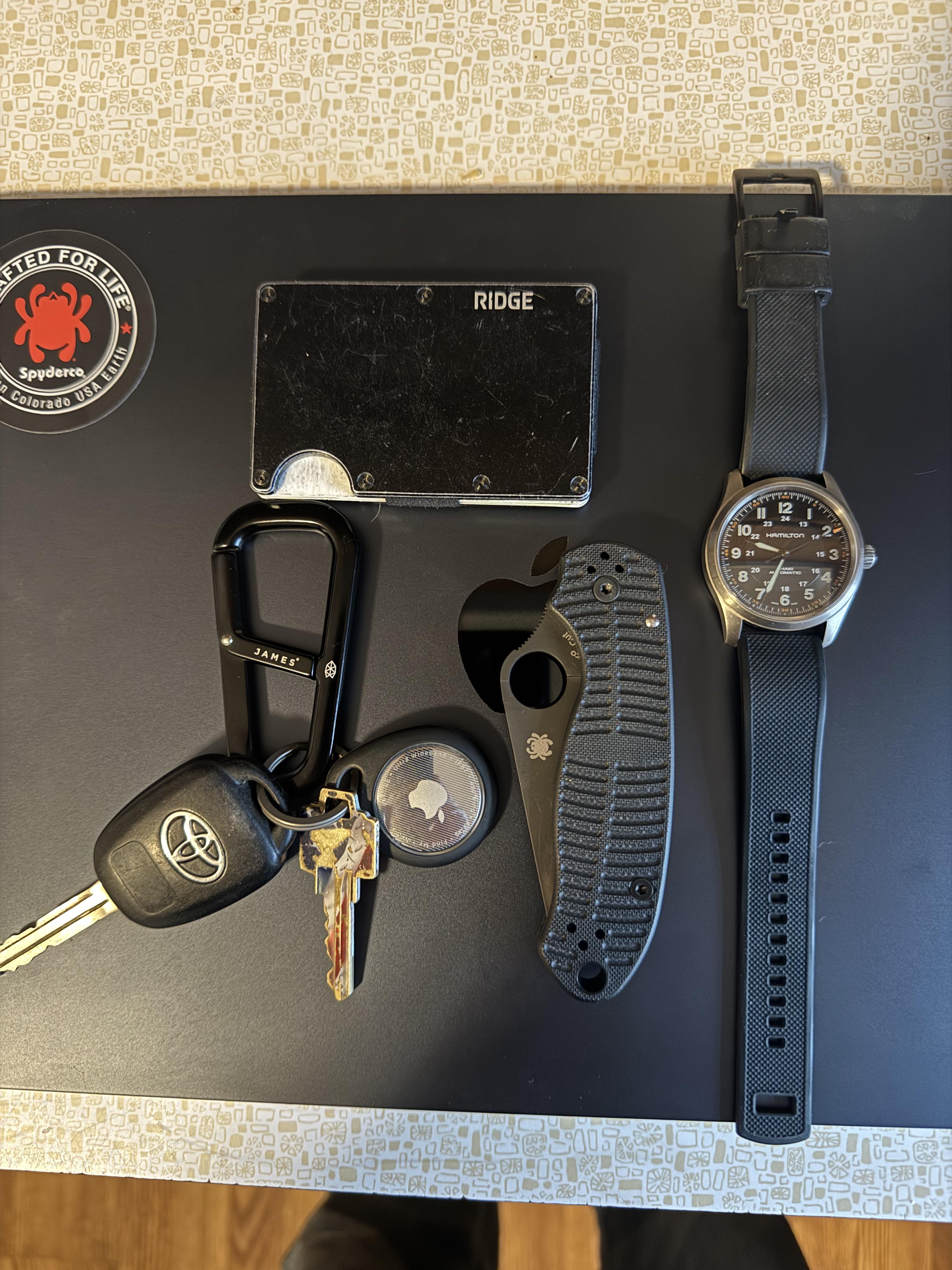 In EDC My EDC April 14, 2026 Hardin carabinerPara 3 salt Hamilton khaki automatic titanium on a Barton elite silicone strap.Ridge walletby Mallcop1993 EDC Prev Post Several flashlight questions in one post April 14, 2026 Next Post Ontario Rat 1.5 is way more knife than I expected for what I paid. April 14, 2026 Related Posts Hello from Utah April 18, 2026 Silver and Steel April 18, 2026 69M/PROFESSIONAL HAWG CRANKER April 18, 2026 1 Comment AutoModerator 4 days ago Thank you for posting to r/EDC! Include a detailed item list (make/model) within **1 hour** of submission. Lists can go in the title, a comment, or the image. Posts without lists will be removed. If you have already provided a list, not further action is needed, thanks | [FAQ](https://www.reddit.com/r/EDC/wiki/faq)*I am a bot, and this action was performed automatically. Please [contact the moderators of this subreddit](/message/compose/?to=/r/EDC) if you have any questions or concerns.*Write A CommentYou must be logged in to post a comment.