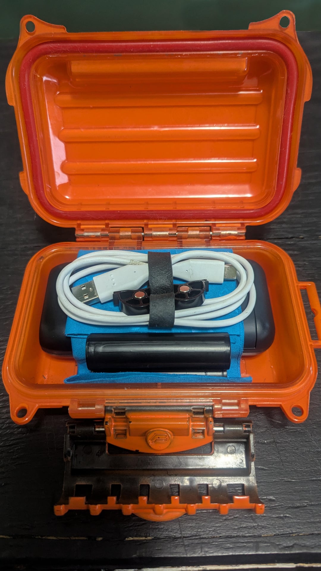 I had this lil Plano case sitting around forever. It was just begging to be used for some kind of kit. So I jammed this stuff in there and boom I've got a portable and waterproof power "system" for headlamps, handhelds, or my gps should it need a recharge. The lens cloth is there to fill space and reduce rattling. Not pictured is a USB solar charger (it doesn't fit in the case).