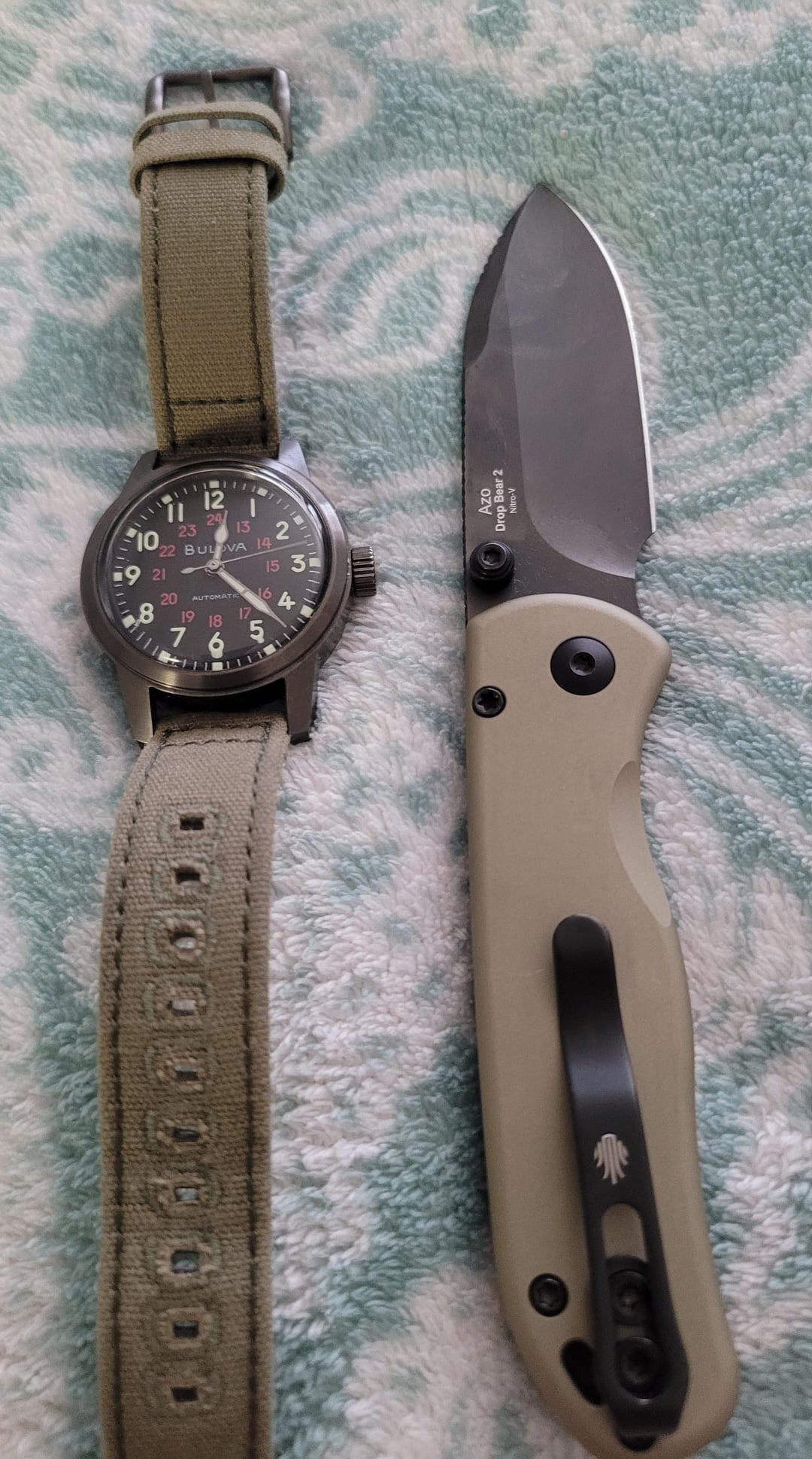 In EDC For Tuesday. . . Bulova Hack and Kizer Drop Bear April 14, 2026 For Tuesday. . . Bulova Hack and Kizer Drop Bear by davect01 EDC Prev Post What’s the best way to clean this? April 14, 2026 Next Post Traditionals for Tuesday April 14, 2026 Related Posts current carry April 16, 2026 This is my newly designed product – a coin-sized EDC tool. Is there anything that needs improvement? April 16, 2026 Sleep/Gym Shorts EDC April 16, 2026 1 Comment AutoModerator 2 days ago Thank you for posting to r/EDC! Include a detailed item list (make/model) within **1 hour** of submission. Lists can go in the title, a comment, or the image. Posts without lists will be removed. If you have already provided a list, not further action is needed, thanks | [FAQ](https://www.reddit.com/r/EDC/wiki/faq)*I am a bot, and this action was performed automatically. Please [contact the moderators of this subreddit](/message/compose/?to=/r/EDC) if you have any questions or concerns.*Write A CommentYou must be logged in to post a comment.