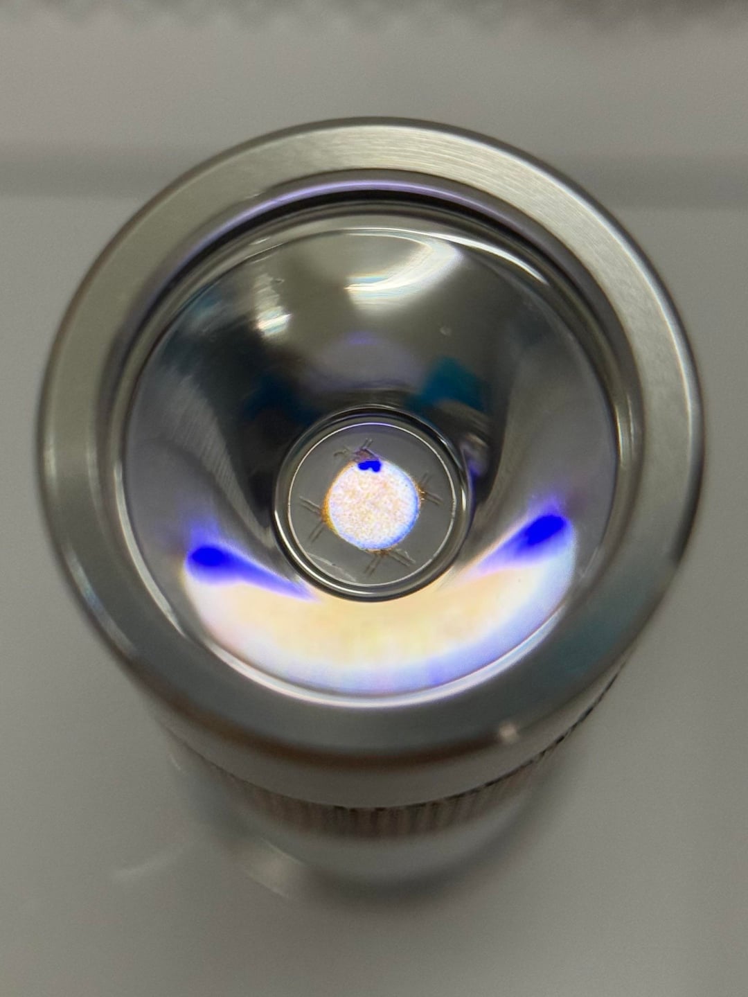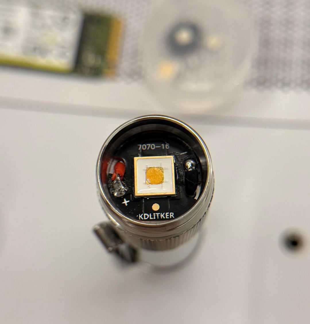 Dummy me end up scratching some phosphor off the corner of the LED when I was assembling the light so you will noticed the bright blue light in the pictures. I was mad at first but then I was not because I did not like the tint of HT70; it’s somewhat yellowish green. Pictures do not show how it looks to my eyes.