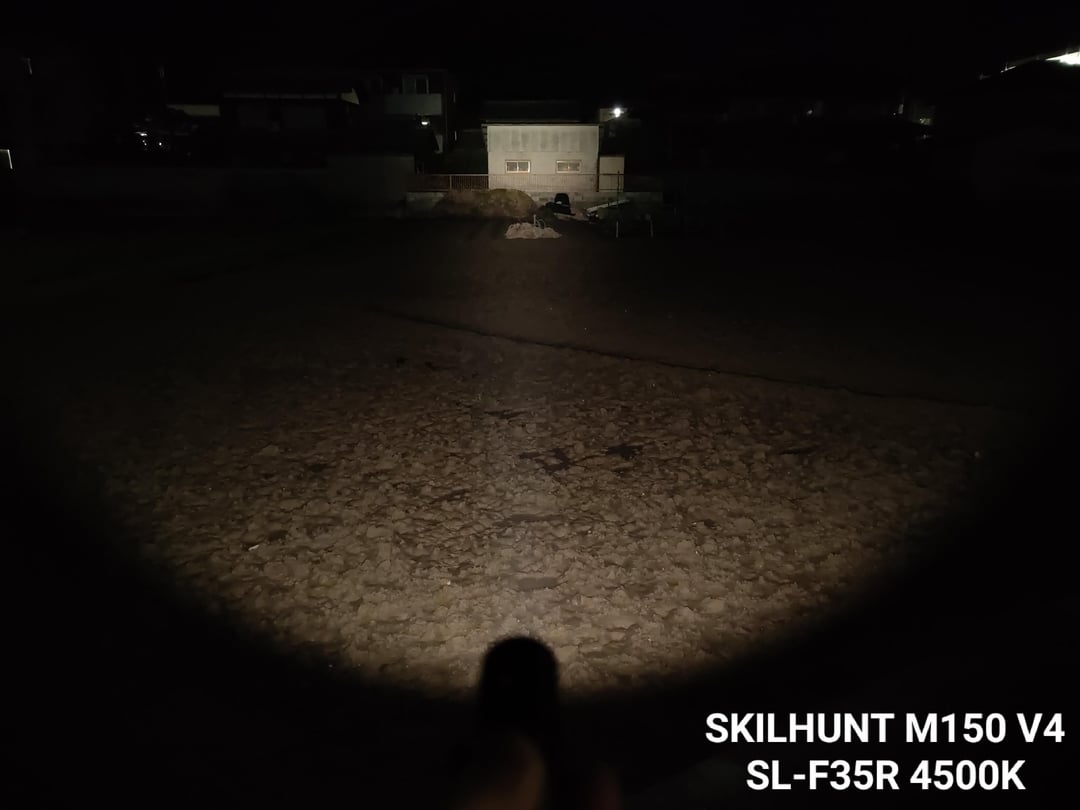 The beam is fairly tight, as expected. When using it to illuminate farther distances, the area around your feet can become noticeably dim. However, the spill is still wide enough that angling it slightly downward while walking works well in practice. The throw is impressive for a light of this size.