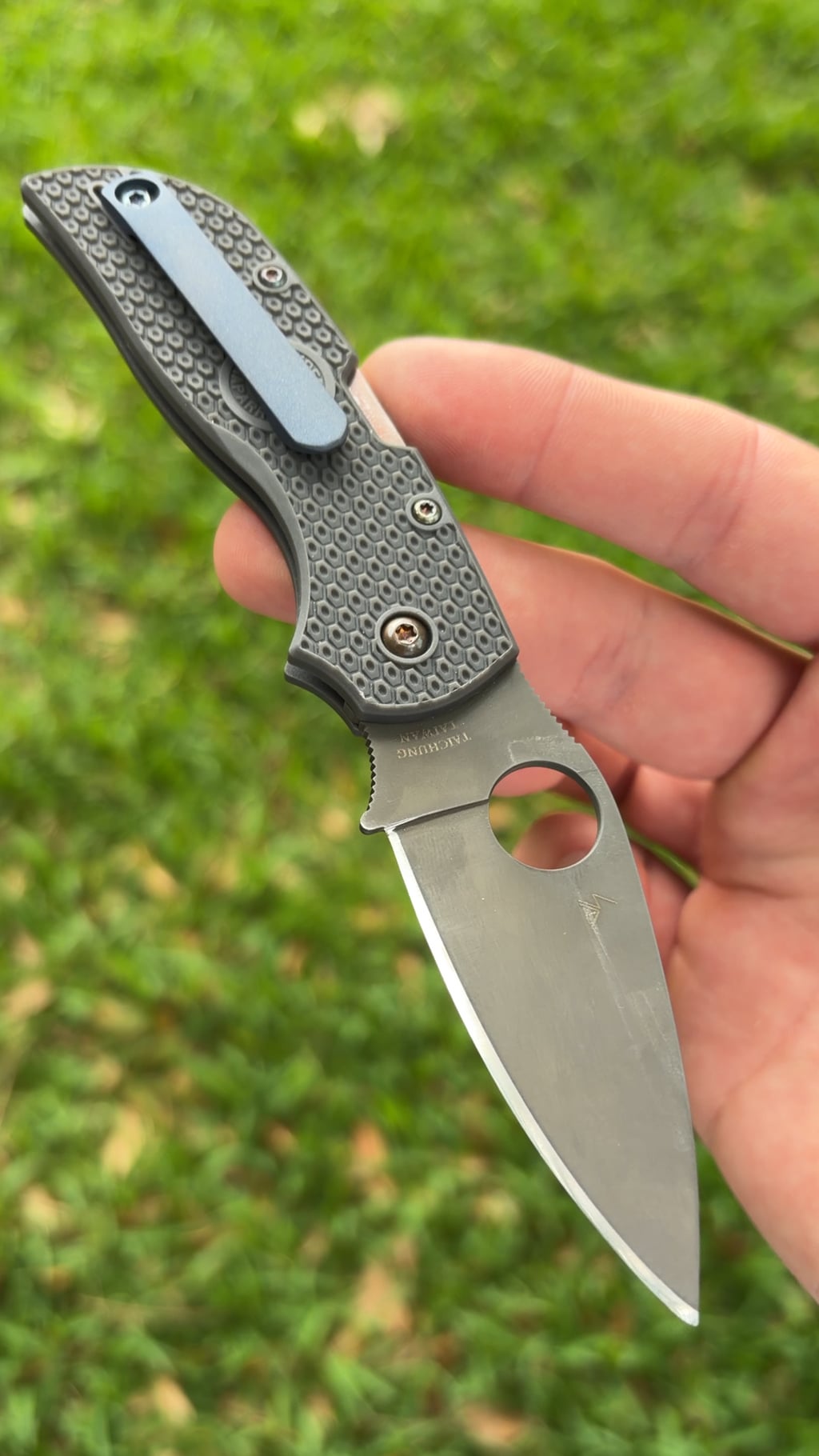 Gave the blade and backspacer an acid wash, heat anodized the hardware and added a Ti clip from Rips Garage. The acid wash came out a bit messier than I was aiming for and when reprofiling edge I slightly rounded the tip. There’s definitely room for improvement, but still oving with how the overall look turned out!