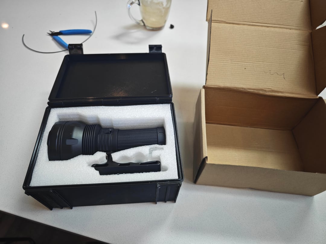 3d Printed a case that fit the stock foam for my convoy big boi. I used this parametric box printed in PETG, highly recommend the model