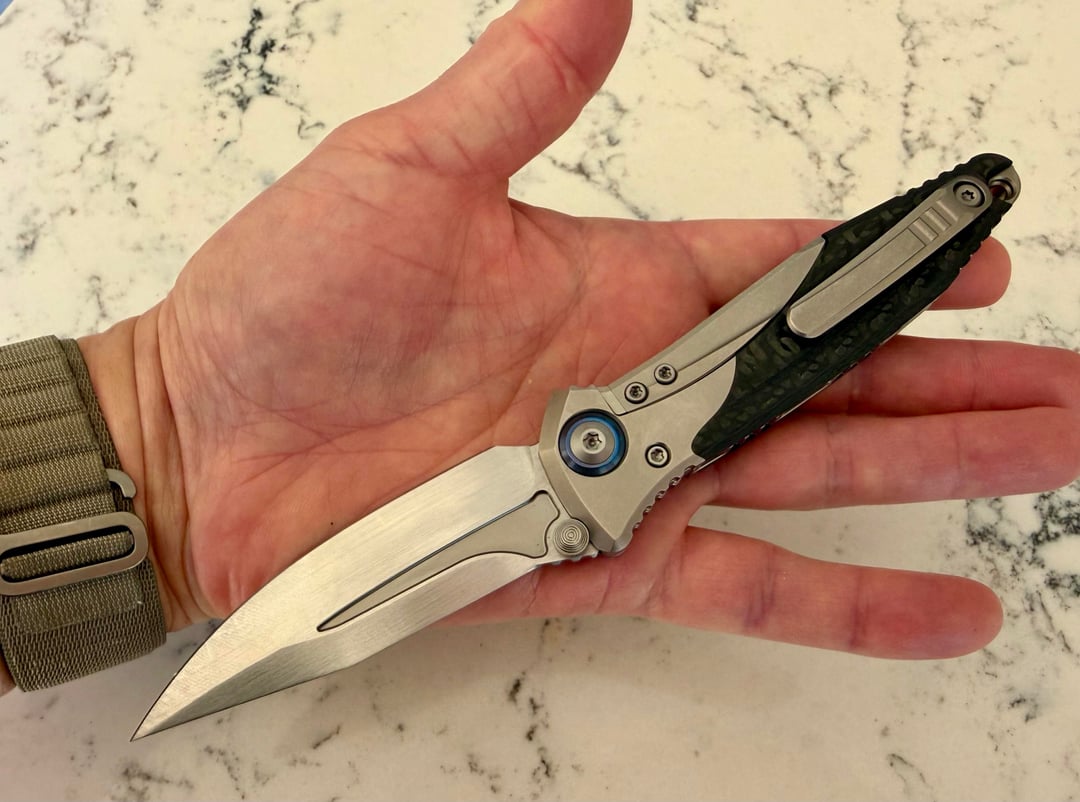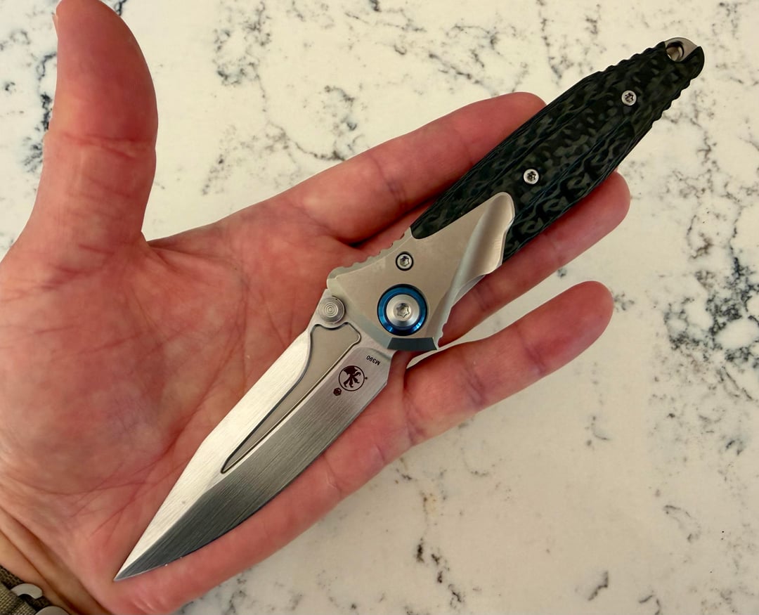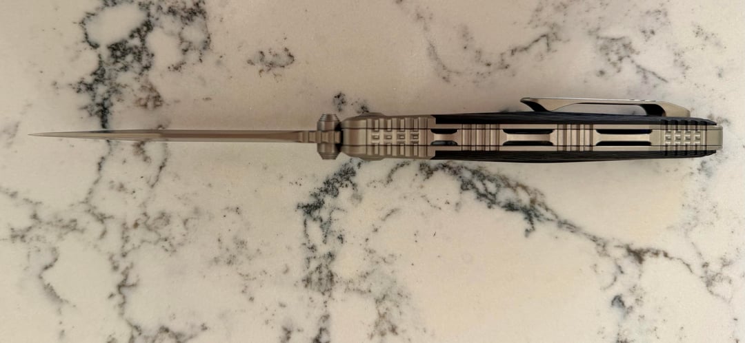 Ti and CF handles, M390 blade. Made by Rike for Microtech