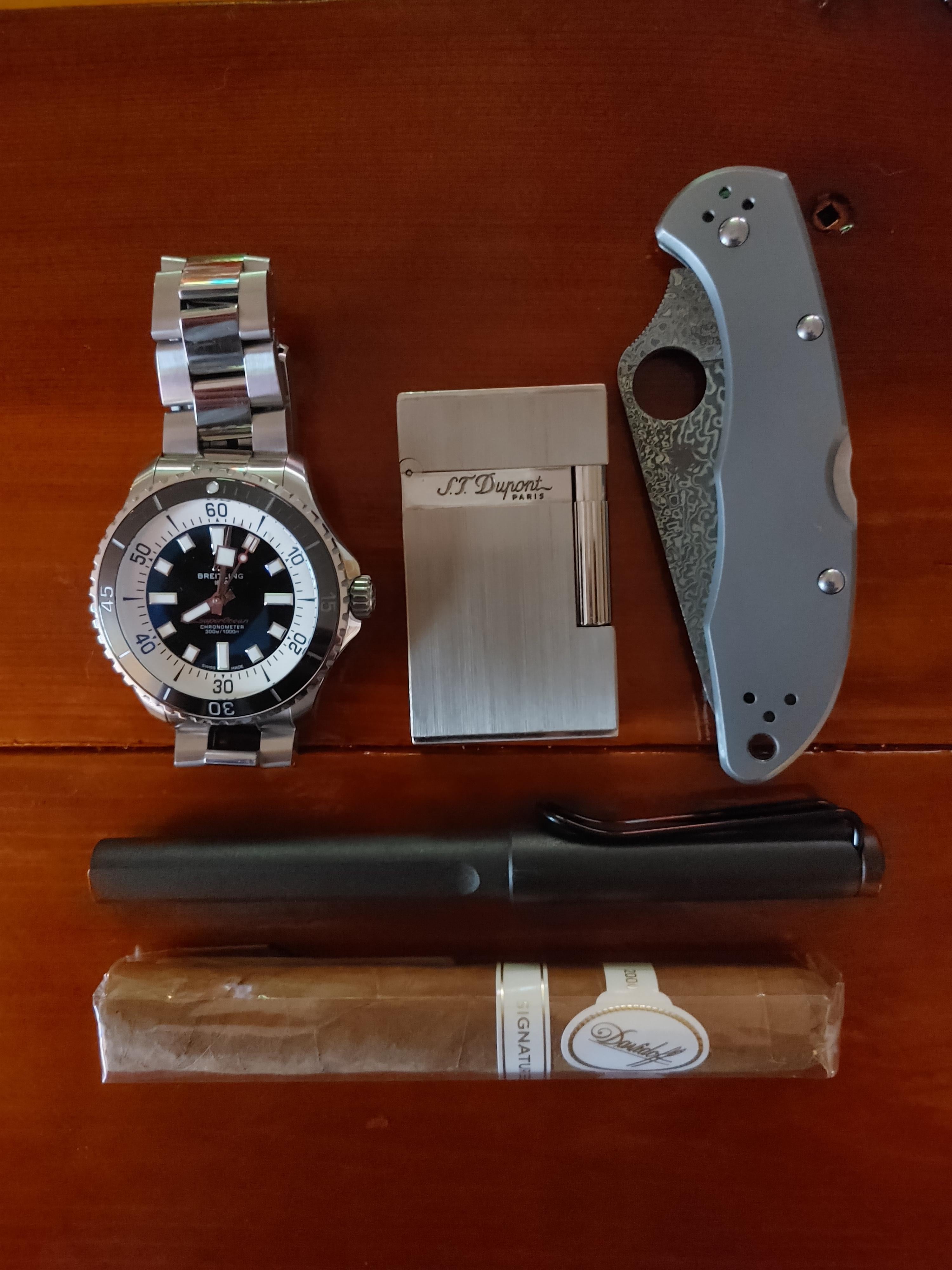 In EDC Spring weekend Carry April 18, 2026 Breitling SuperOcean 44mm, St Dupont linge 2, Spyderco Titanium Delica, Lamy safari rollerball, Davidoff signature 2000. by Desperate-Comb-69 EDC Prev Post NKD at least new to me April 18, 2026 Next Post My Little Collection of Small Flashlights April 18, 2026 Related Posts Keeping things fun April 18, 2026 Friday afternoon grilling steaks carry April 18, 2026 Grail acquired! April 18, 2026 1 Comment AutoModerator 2 hours ago Thank you for posting to r/EDC! Include a detailed item list (make/model) within **1 hour** of submission. Lists can go in the title, a comment, or the image. Posts without lists will be removed. If you have already provided a list, not further action is needed, thanks | [FAQ](https://www.reddit.com/r/EDC/wiki/faq)*I am a bot, and this action was performed automatically. Please [contact the moderators of this subreddit](/message/compose/?to=/r/EDC) if you have any questions or concerns.*Write A CommentYou must be logged in to post a comment.