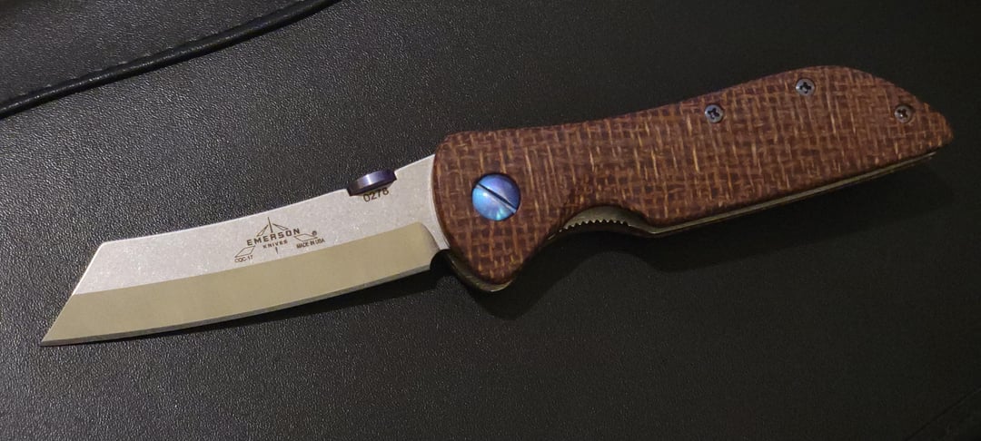 2Weird2Cap 12 hours ago Looks like you have Burlap micarta on that Emerson, not wood.Dang that fatty Wharnie is sweet!