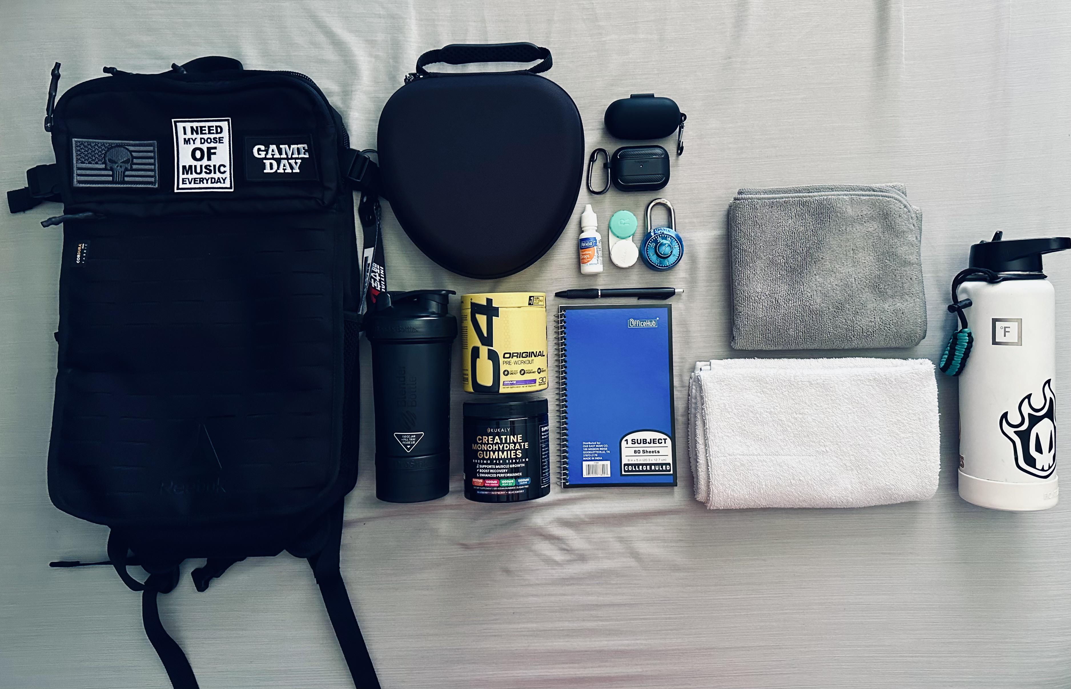 AgentLUMPIA 14 hours ago – *reebok* r4cf crossfit backpack – shaker bottle – c4 pre workout(grape) – creatine gummies – note pad – pen – micro fiber gym towel – towel – *iron flask* 40oz water bottle – master lock – contact lenses – wet drops – airpods pro 2 w/ *spigen* case – *sony* wf-xb700 earbuds – airpods max(usb-c) w/ fintie case