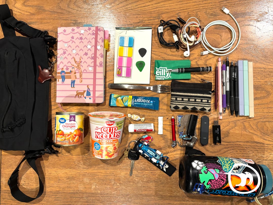 Considering the three usb drives i’m going to guess work/study something computer heavy and you like camping and/or climbing.