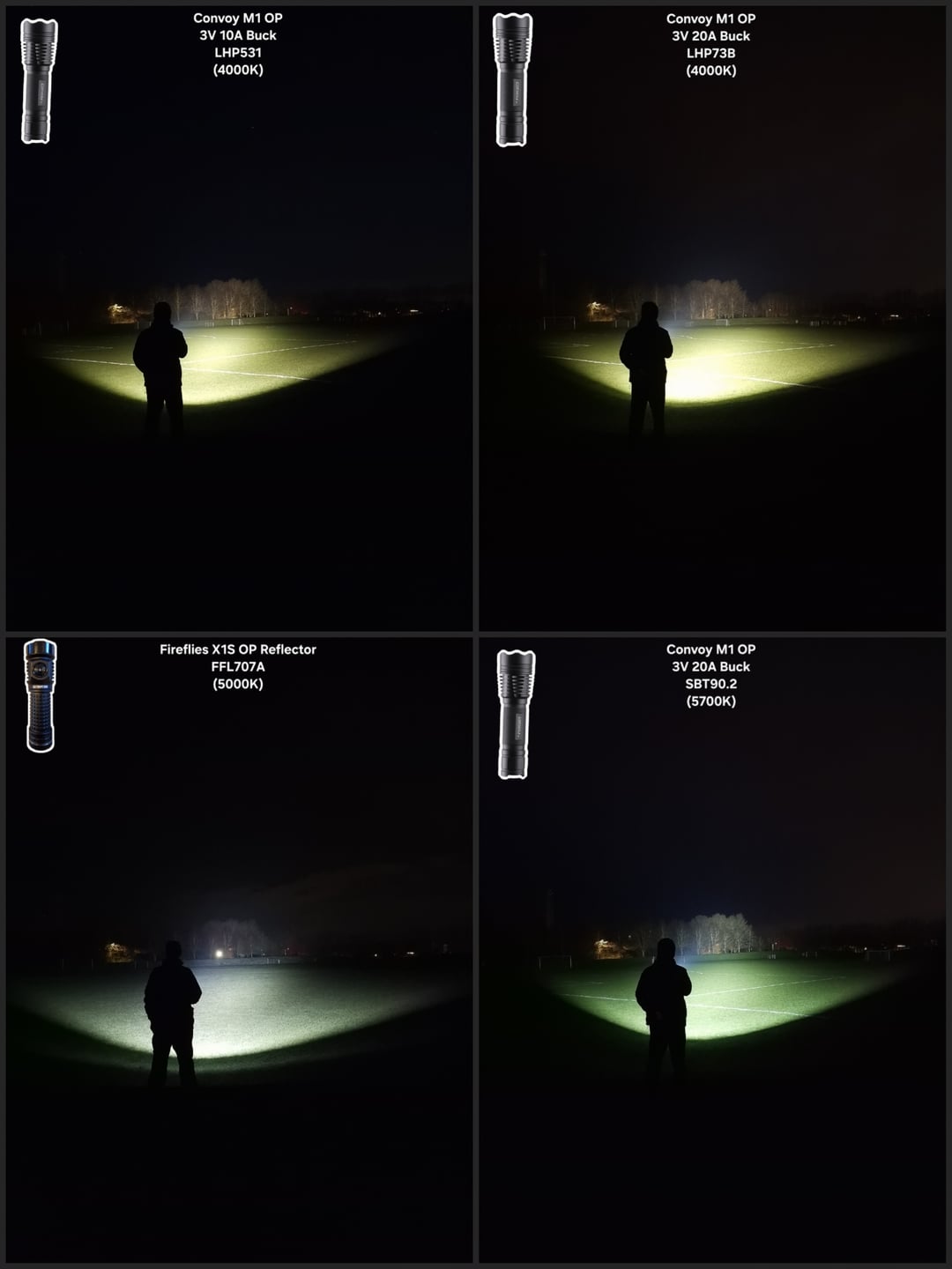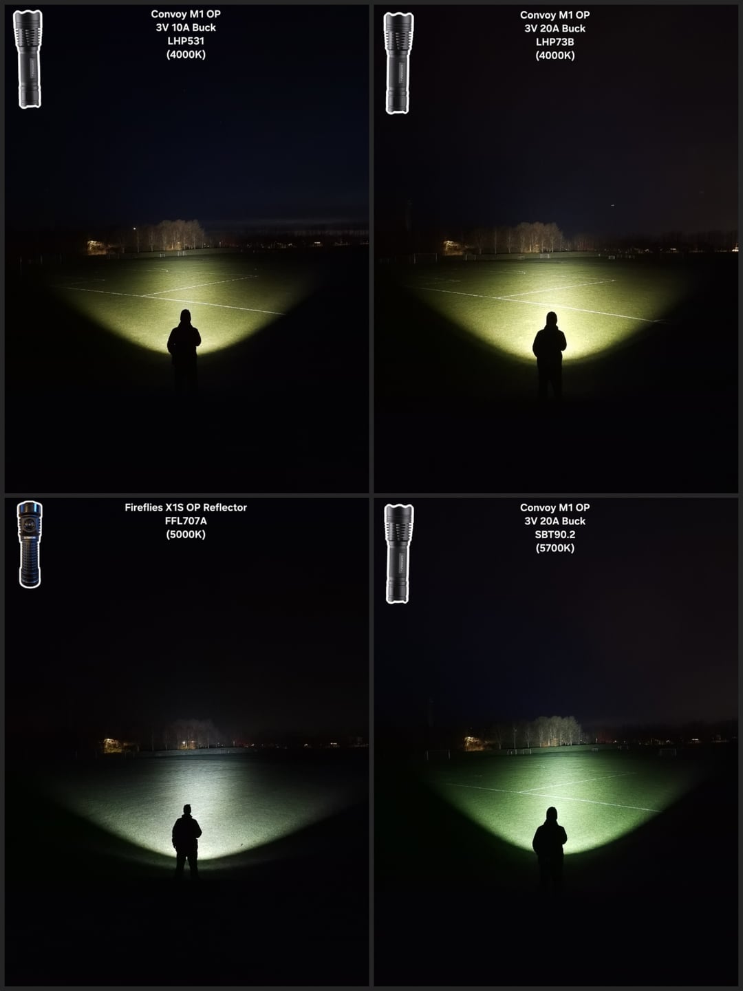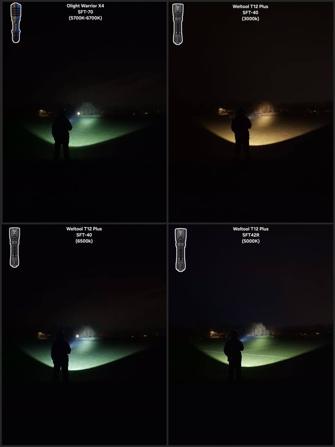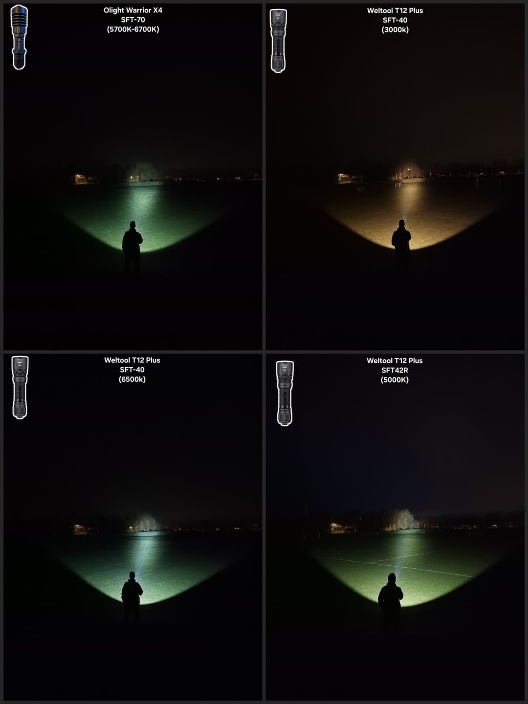 In Flashlight Weltool T12 Plus Reflowed SFT42R 5000K vs stock SFT40 6500K | Convoy M1 SBT90.2 OP Reflector – Measurements 👇 & Beamshots Comparisons 🔦🫘 April 19, 2026 Weltool T12 Plus Reflowed SFT42R 5000K vs stock SFT40 6500K | Convoy M1 SBT90.2 OP Reflector – Measurements 👇 & Beamshots Comparisons 🔦🫘by MetaUndead flashFlashlightlight Prev Post 2 for Sunday April 19, 2026 Next Post Lost my Gerber in the woods April 19, 2026 Related Posts Lost my i3T 2 and need some suggestions on what to buy now April 19, 2026 Anyone have experience with the red or deep red led? Want to get one with an s2+ eventually.. which one is better? April 19, 2026 The Olight Baton 4 Ultra April 19, 2026 2 Comments MetaUndead 4 hours ago ## 🔦 Weltool T12 Plus: SFT42R 5000K (Custom) vs. (SFT40 6500K Stock Weltool Measurements)| Mode | Output (Lumens) | Intensity (Candela) | Beam Distance (Meters) | | :— | :— | :— | :— | | **Full Power** | **2,250** (2,260) | **137,175** (148,000) | **741m** (769m) | | **Medium** | **570** (600) | **37,400** (37,000) | **387m** (384m) | | **Low** | **19** (22) | **1,425** (1,550) | **76m** (78m) |—### **Weltool Performance Notes (SFT42R 5000K Custom)** * **Turbo Runtime:** 2:30 min before step-down. * **Sustained Output:** Settles at **1,000 Lumens**. * **Thermal Profile:** Max temp recorded at **62°C**. * **Build Info:** Custom Weltool SFT42R 5000K Neutral White swap.*** ***## 🔦 Convoy M1 Custom (SBT90.2 + 3V 20A Buck)| Mode | Output | Intensity | Beam Distance | | :— | :— | :— | :— | | **100% Turbo** | **4,800 lm** | **82,075 cd** | **573m** | | **35% High** | **1,850 lm** | **37,700 cd** | **388m** | | **10% Medium** | **1,200 lm** | **23,500 cd** | **307m** | | **1% Low** | **165 lm** | **3,400 cd** | **117m** |—### **Convoy Performance Notes** * **Turbo Runtime:** Immediate slow step-down; sustained at **1:30 min**. * **Sustained Output:** Settles at **750 Lumens**. * **Thermal Profile:** Max temp recorded at **55°C**. * **Build Specs:** Luminus SBT90.2 / 3V 20A Buck / OP Reflector. * **Test Distance:** 5 Meters (All lights) | **Calculation:** Lux @ 5m × 25 = Candela. samvimeswashere 4 hours ago Neat! Thanks for the data and 🫘Write A CommentYou must be logged in to post a comment.