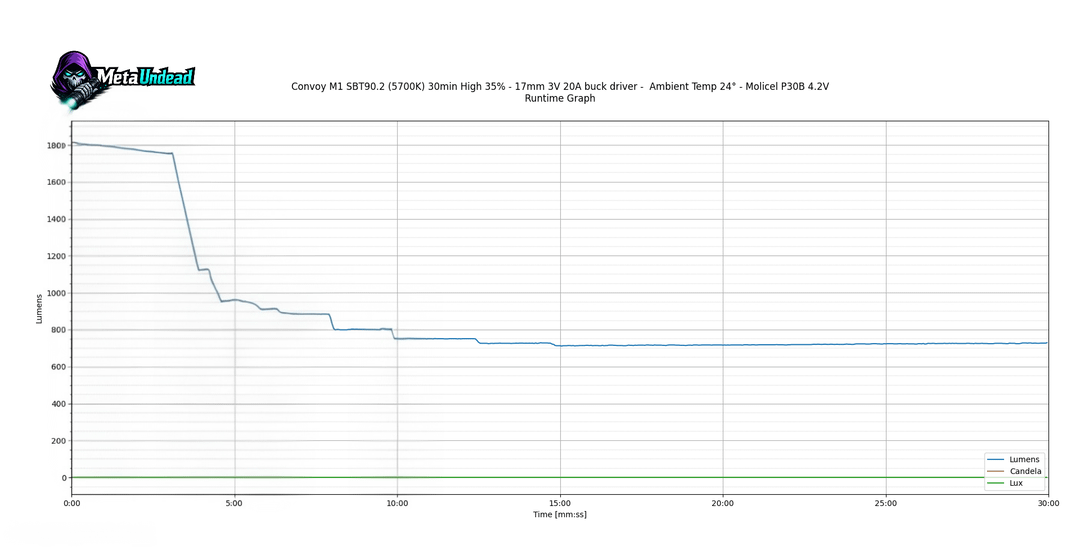 MetaUndead 4 hours ago ## 🔦 Weltool T12 Plus: SFT42R 5000K (Custom) vs. (SFT40 6500K Stock Weltool Measurements)| Mode | Output (Lumens) | Intensity (Candela) | Beam Distance (Meters) | | :— | :— | :— | :— | | **Full Power** | **2,250** (2,260) | **137,175** (148,000) | **741m** (769m) | | **Medium** | **570** (600) | **37,400** (37,000) | **387m** (384m) | | **Low** | **19** (22) | **1,425** (1,550) | **76m** (78m) |—### **Weltool Performance Notes (SFT42R 5000K Custom)** * **Turbo Runtime:** 2:30 min before step-down. * **Sustained Output:** Settles at **1,000 Lumens**. * **Thermal Profile:** Max temp recorded at **62°C**. * **Build Info:** Custom Weltool SFT42R 5000K Neutral White swap.*** ***## 🔦 Convoy M1 Custom (SBT90.2 + 3V 20A Buck)| Mode | Output | Intensity | Beam Distance | | :— | :— | :— | :— | | **100% Turbo** | **4,800 lm** | **82,075 cd** | **573m** | | **35% High** | **1,850 lm** | **37,700 cd** | **388m** | | **10% Medium** | **1,200 lm** | **23,500 cd** | **307m** | | **1% Low** | **165 lm** | **3,400 cd** | **117m** |—### **Convoy Performance Notes** * **Turbo Runtime:** Immediate slow step-down; sustained at **1:30 min**. * **Sustained Output:** Settles at **750 Lumens**. * **Thermal Profile:** Max temp recorded at **55°C**. * **Build Specs:** Luminus SBT90.2 / 3V 20A Buck / OP Reflector. * **Test Distance:** 5 Meters (All lights) | **Calculation:** Lux @ 5m × 25 = Candela.