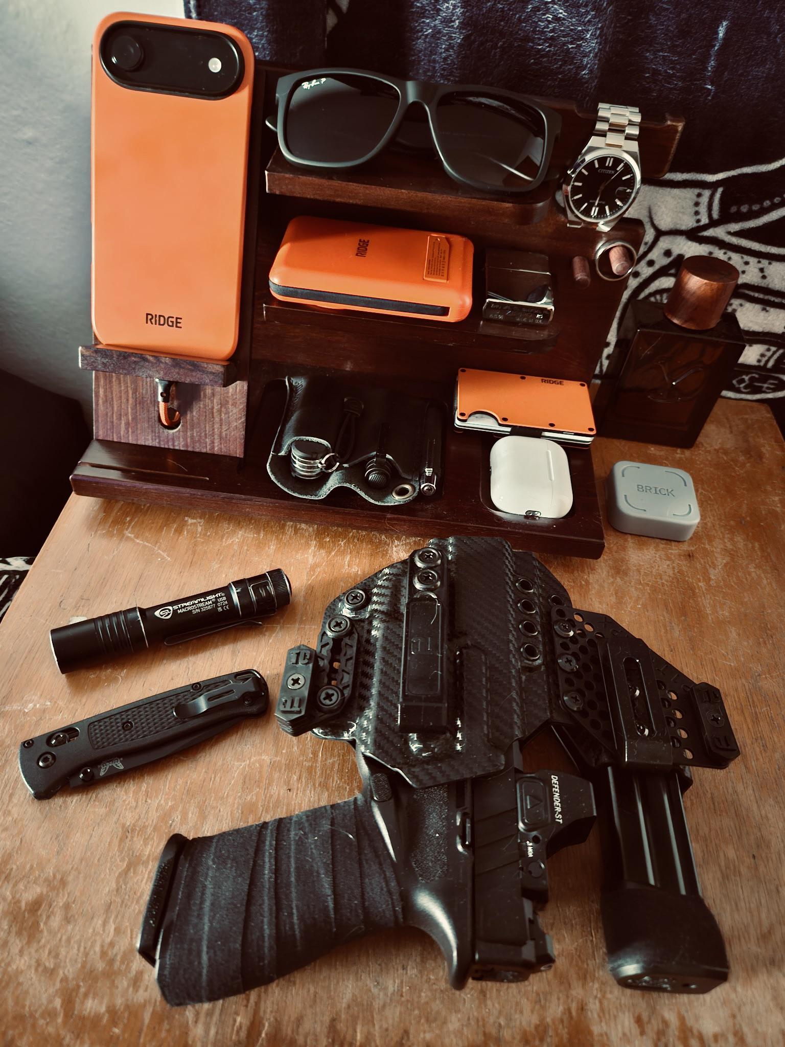 In EDC This post not brought to you by Ridge. April 19, 2026 My wife bought me this cool nightstand organizer thing. by pumpkin-head7617 EDC Prev Post EDC of an animation student struggling to finish his final animated film. April 19, 2026 Next Post Arbutus wood scales on the Benchmade Bugout 535! April 19, 2026 Related Posts Cool stuff April 20, 2026 Super Simple Pocket Dump April 20, 2026 Simple but effective April 19, 2026 2 Comments AutoModerator 3 hours ago Thank you for posting to r/EDC! Include a detailed item list (make/model) within **1 hour** of submission. Lists can go in the title, a comment, or the image. Posts without lists will be removed. If you have already provided a list, not further action is needed, thanks | [FAQ](https://www.reddit.com/r/EDC/wiki/faq)*I am a bot, and this action was performed automatically. Please [contact the moderators of this subreddit](/message/compose/?to=/r/EDC) if you have any questions or concerns.* NodeCipher 3 hours ago How do you like the case?Write A CommentYou must be logged in to post a comment.